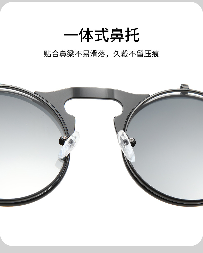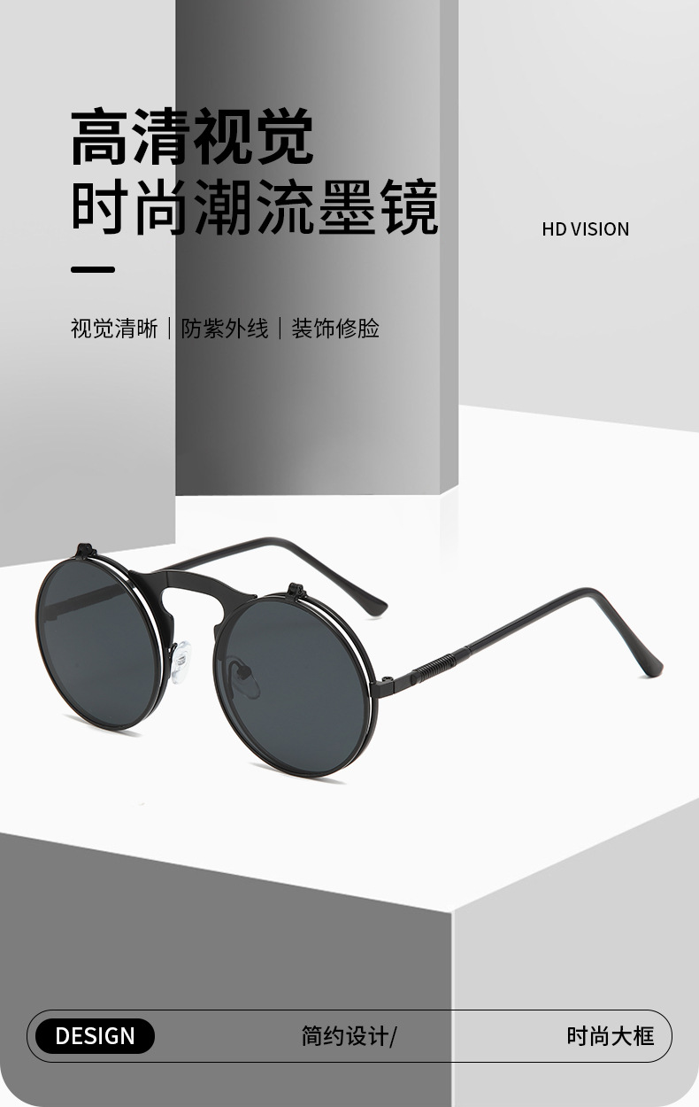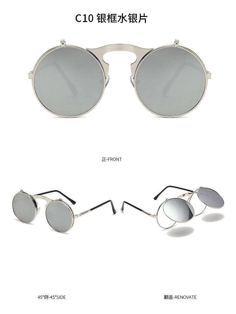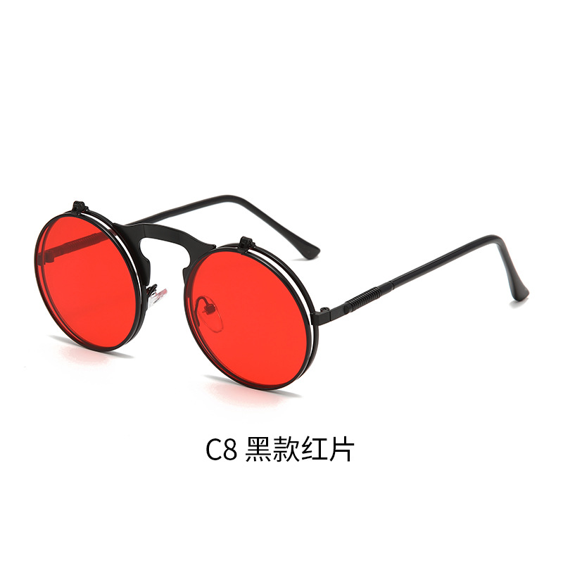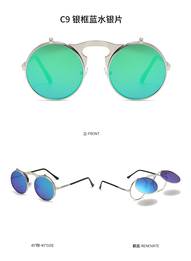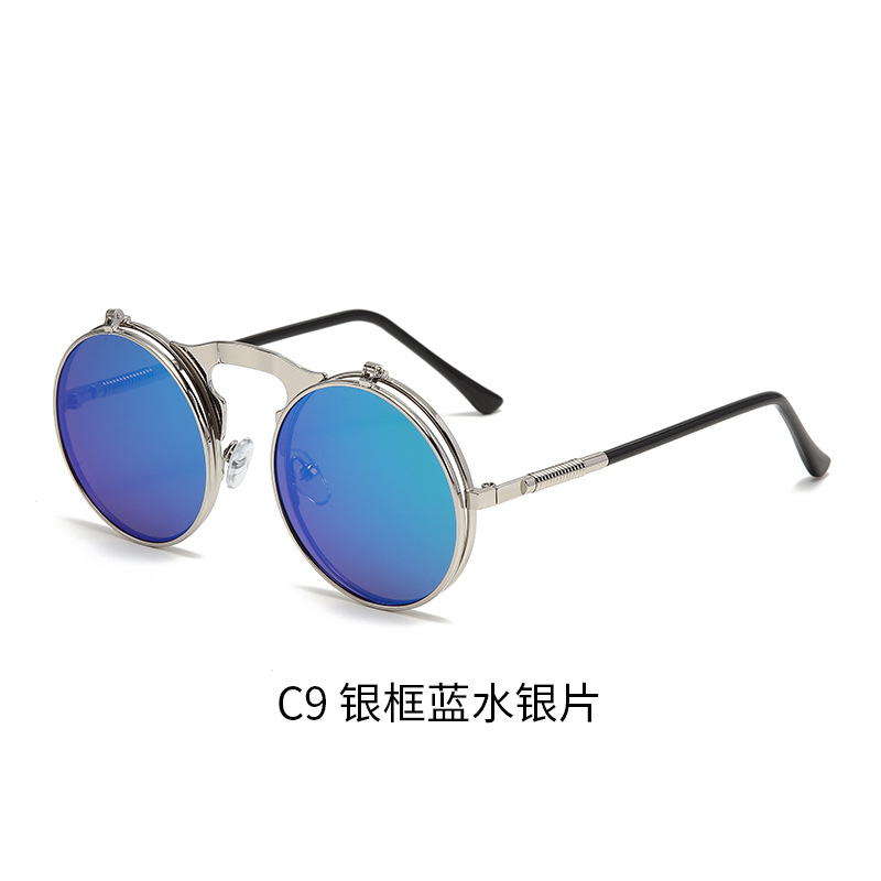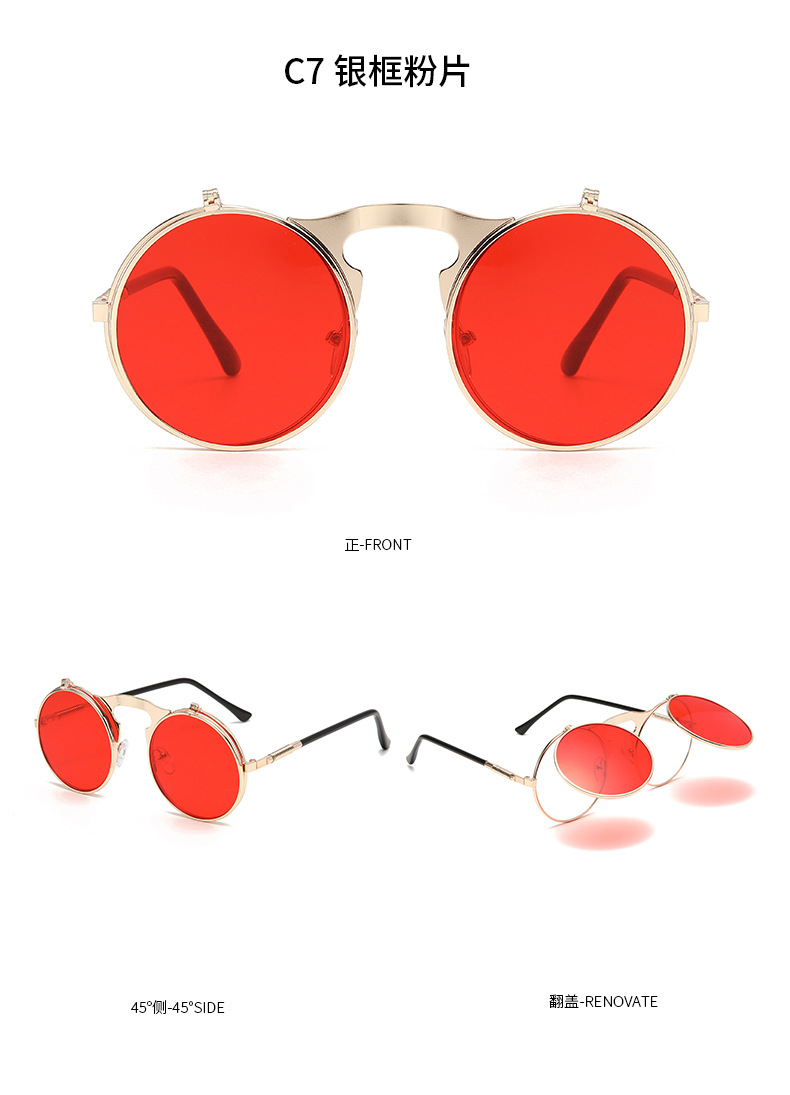 GLAZZY 크로스 보더 레트로 메탈 스팀펑크 플립 온 선글라스 접는 선글라스 남성용 및 여성용 안경 트렌디 라운드 프레임 왕자의 거울스토어 가기