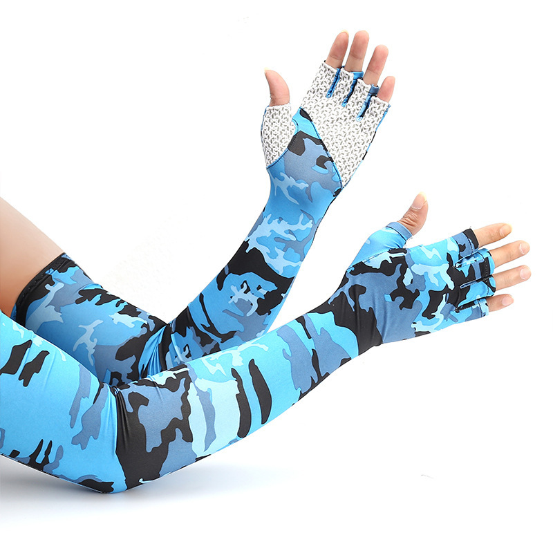 자외선 차단제 다섯 손가락 아이스 슬리브 남성과 여성의 길어진 야외 라이딩 운전 미끄럼 방지 낚시 멋진 반 손가락 얼음 실크 자외선 차단제 장갑