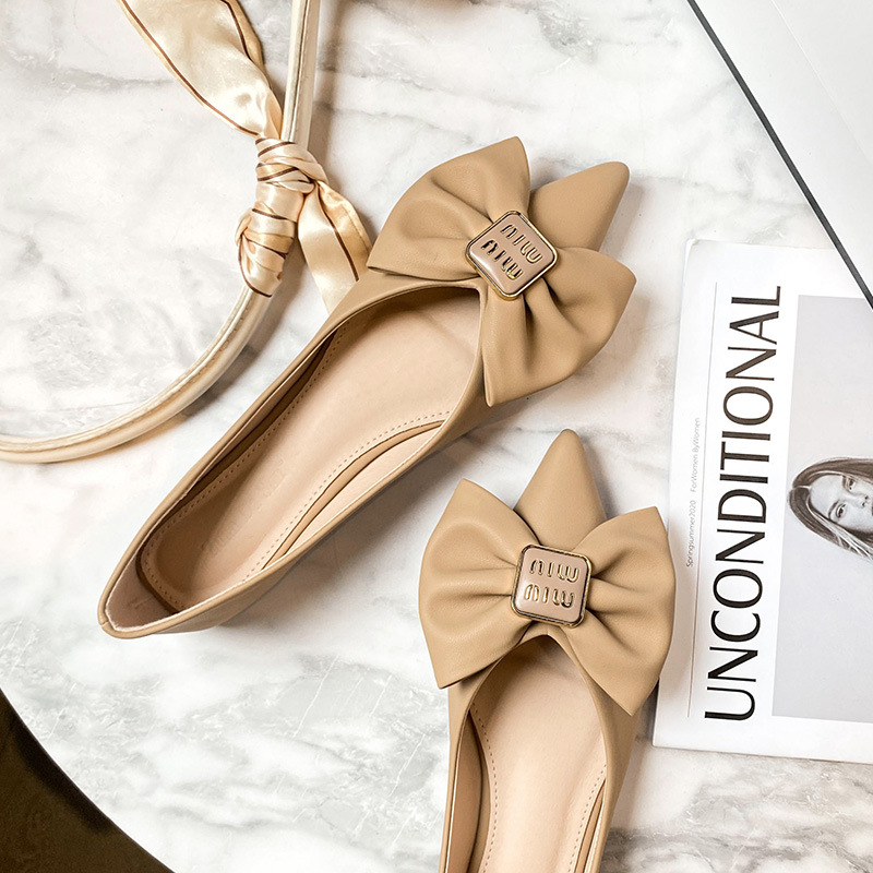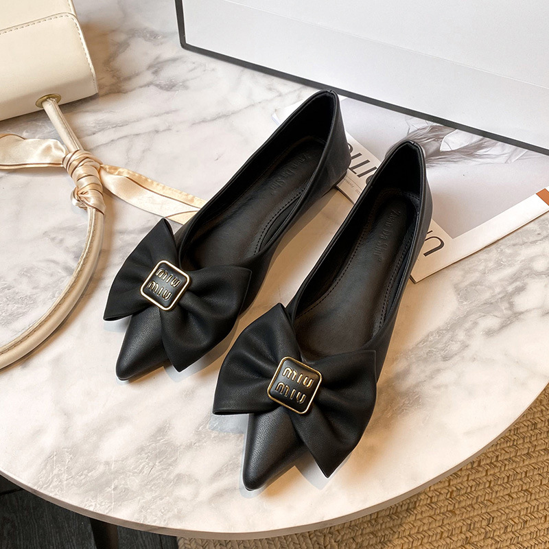 T91 뾰족한 발가락 싱글 슈즈 여성용 플랫 얕은 입 봄 새로운 스타일 기질 모든 매치 부드러운 바닥 펌프 플러스 사이즈 여성 신발 41-43