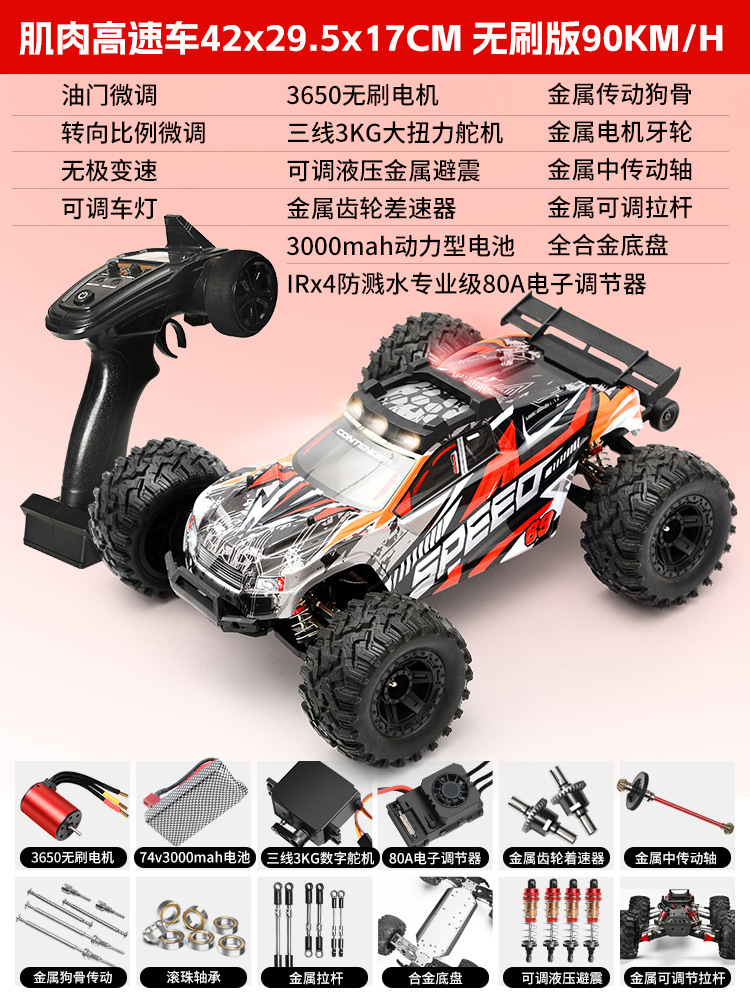 • [브러시리스 업그레이드 레드 1:10 근육 전문 오프로드 차량] 90 km/h 금속 섀시 유압 충격 흡수 장치