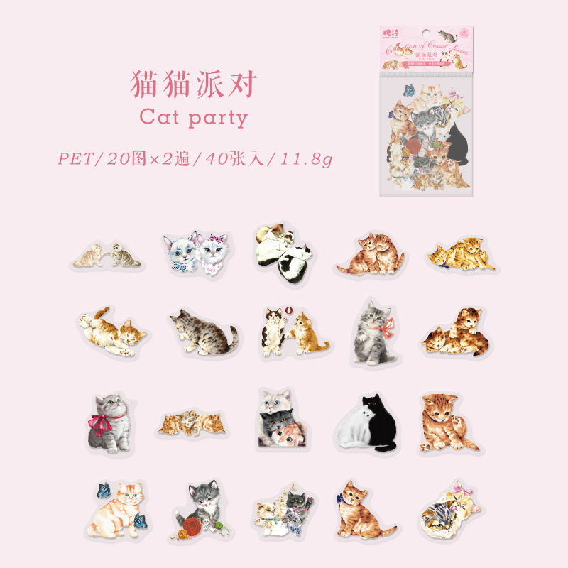설탕시 애완 동물 스티커 가방 사랑 애완 동물 시리즈 책 변경 가능한 고양이 귀여운 애완 동물 손 계정 재료 장식 스티커 40