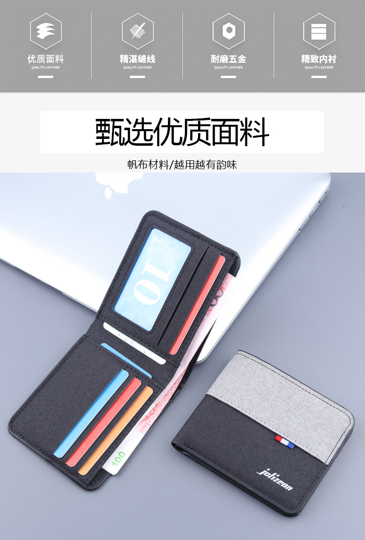 캔버스 지갑 접는 남자의 데님 달러 가방 남자의 지갑 대비 색상 짧은 클립 남자의 지갑 공장 도매스토어 가기