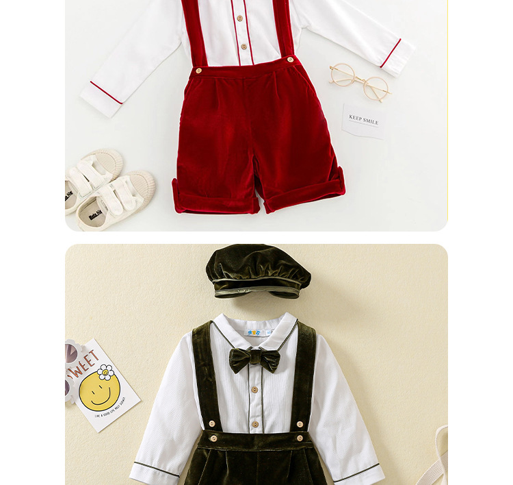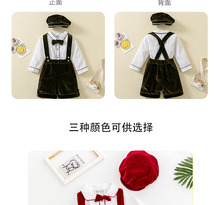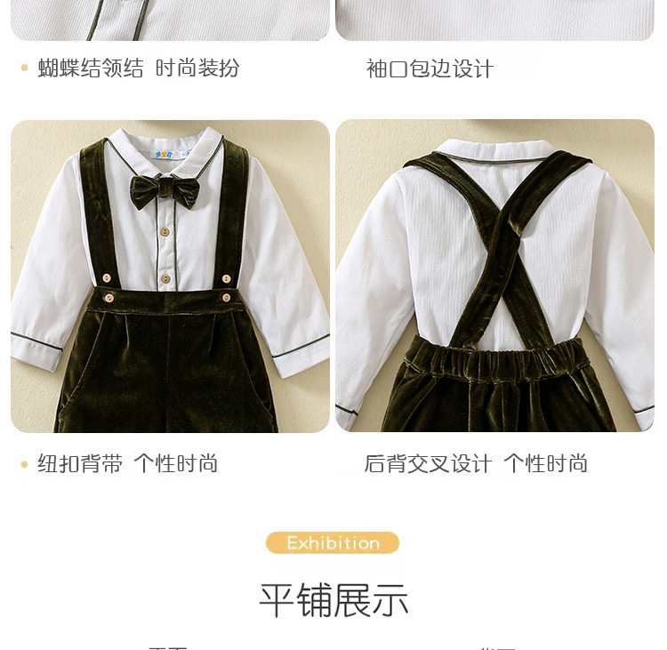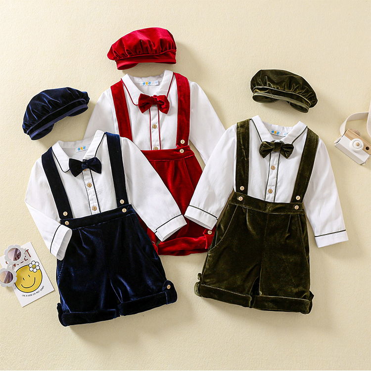 소년 세트 긴 소매 셔츠 황금 벨벳 바지 영국 스타일 크리스마스 신사 원피스 대외 무역을위한 쓰리 피스 세트