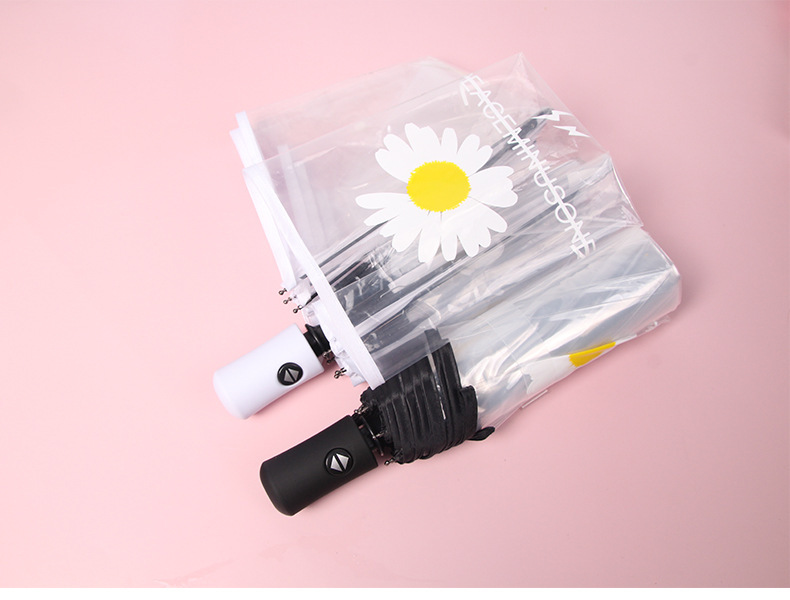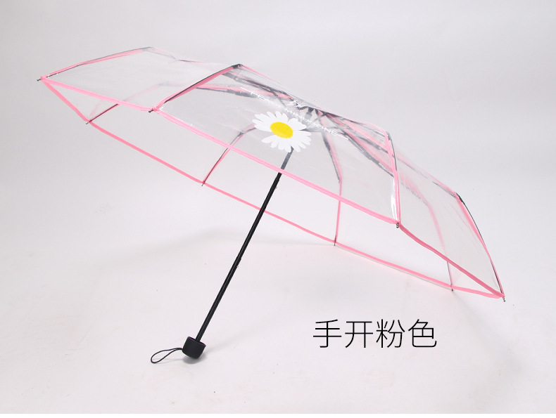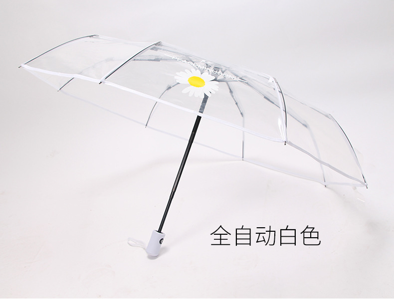 작은 신선한 스타일 학생 접는 3 중 우산 INS 일본식 데이지 우산 인쇄 로고 자동 투명 우산