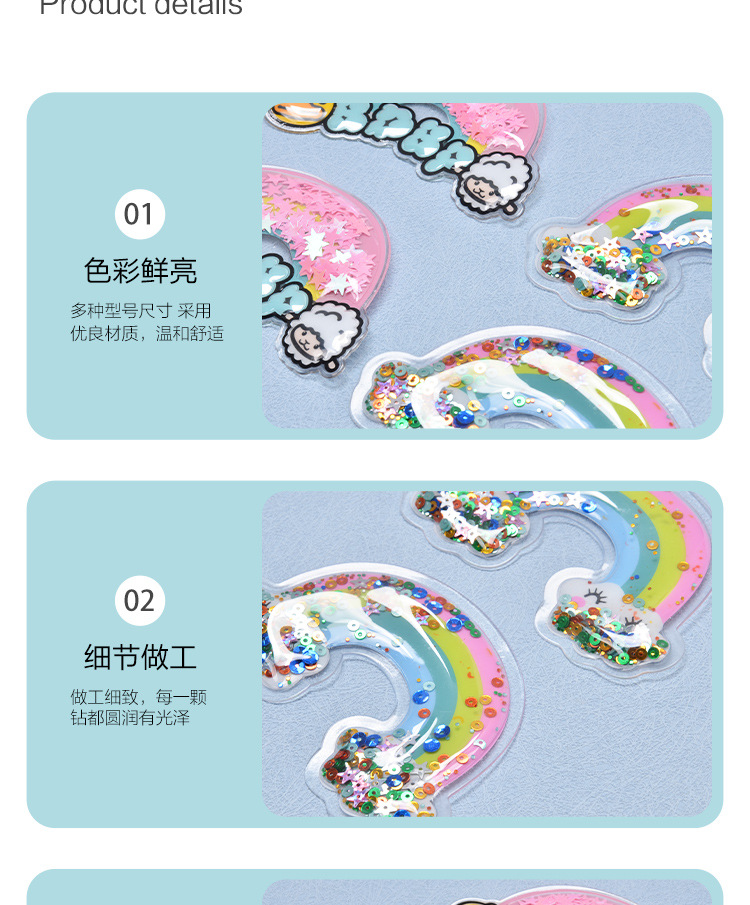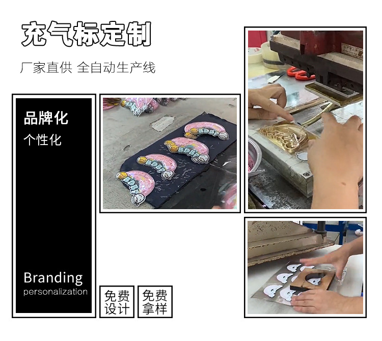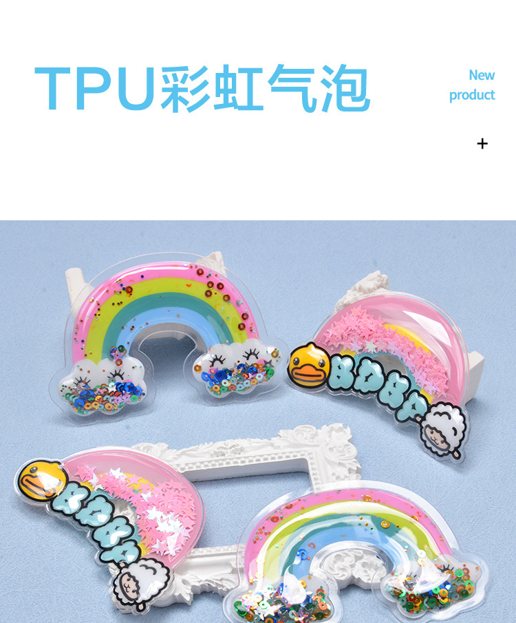 인쇄 된 무지개 풍선 라벨 만화 아동복 상표 스팽글 PVC 버블 라벨 DIY 키 펜던트스토어 가기