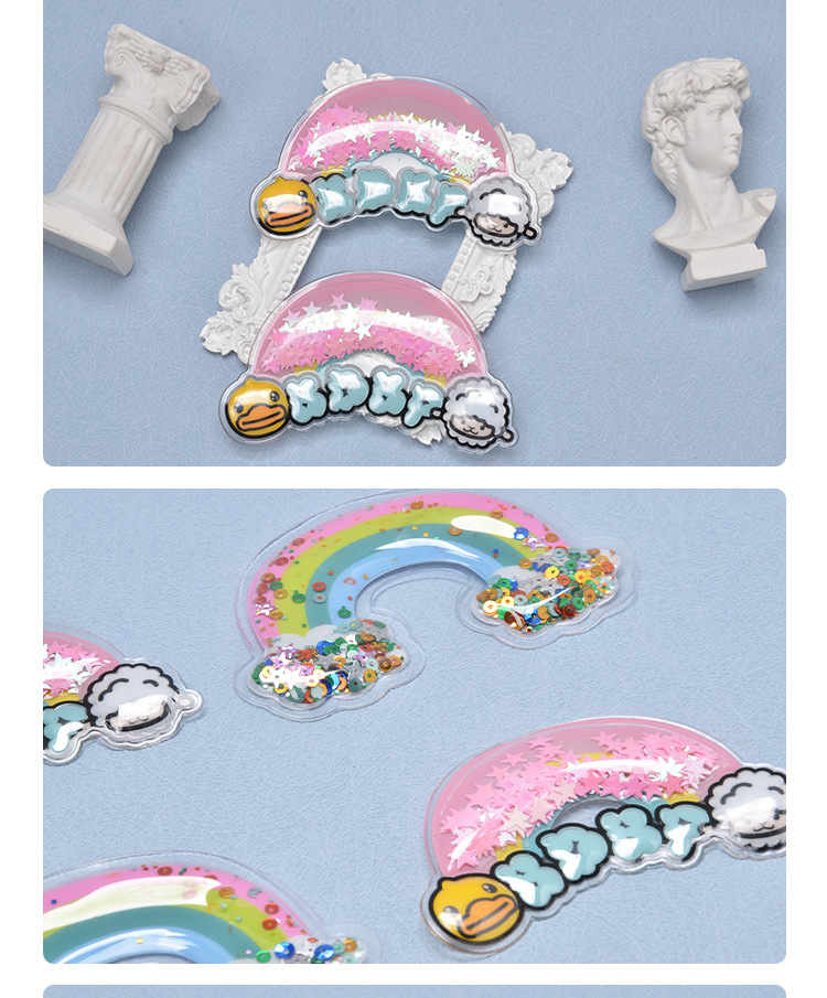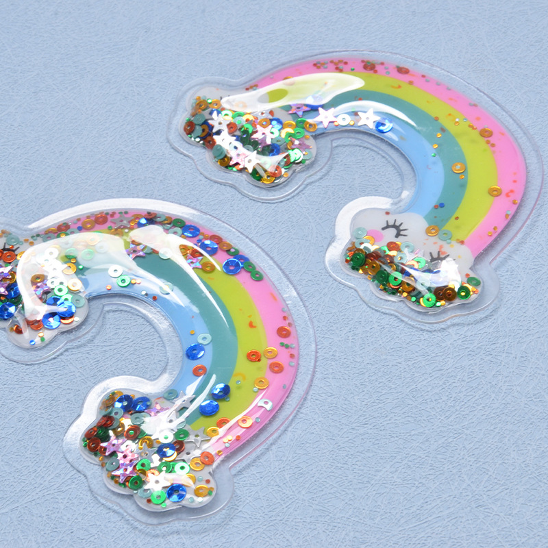 인쇄 된 무지개 풍선 라벨 만화 아동복 상표 스팽글 PVC 버블 라벨 DIY 키 펜던트
