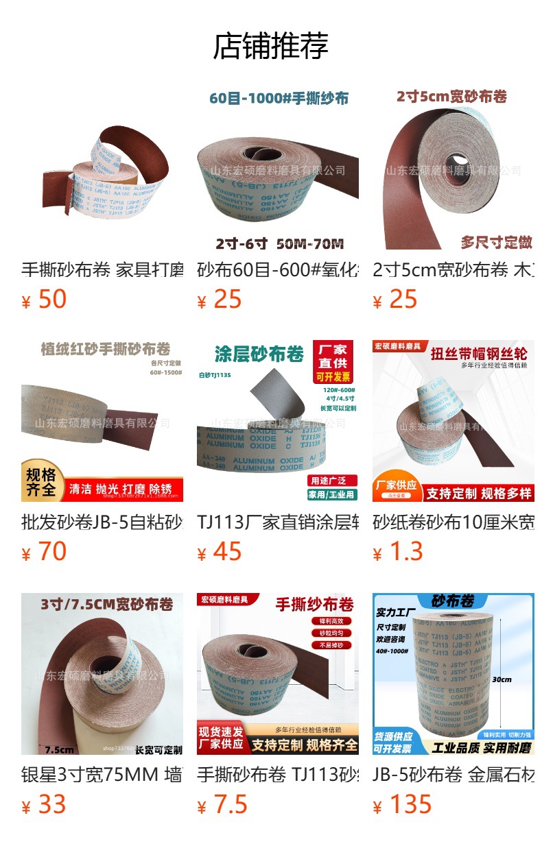 손으로 찢어진 모래 천 롤 TJ113 사포 10cm 폭 모래 벨트 나무 연삭 모래 가죽 jb-5 다이아몬드 거즈 롤스토어 가기