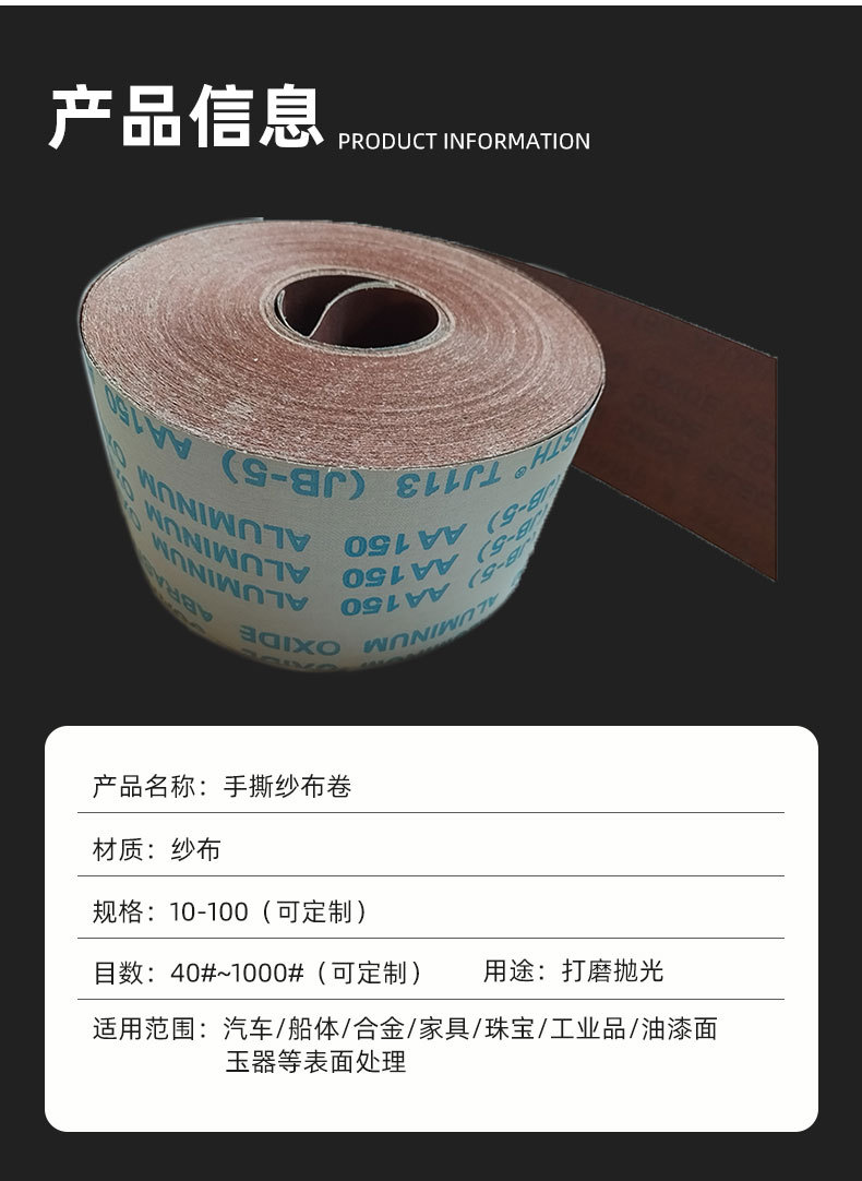 손으로 찢어진 모래 천 롤 TJ113 사포 10cm 폭 모래 벨트 나무 연삭 모래 가죽 jb-5 다이아몬드 거즈 롤