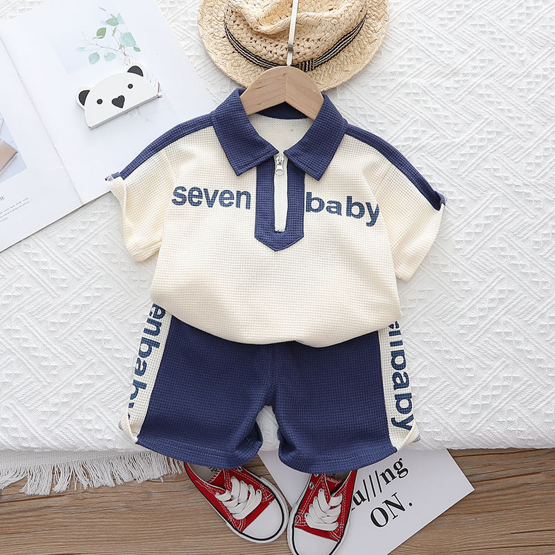 대외 무역 소년 멋진 지퍼 폴로 셔츠 반팔 세트 캐주얼 소년 2023 새로운 여름 얇은 도매스토어 가기