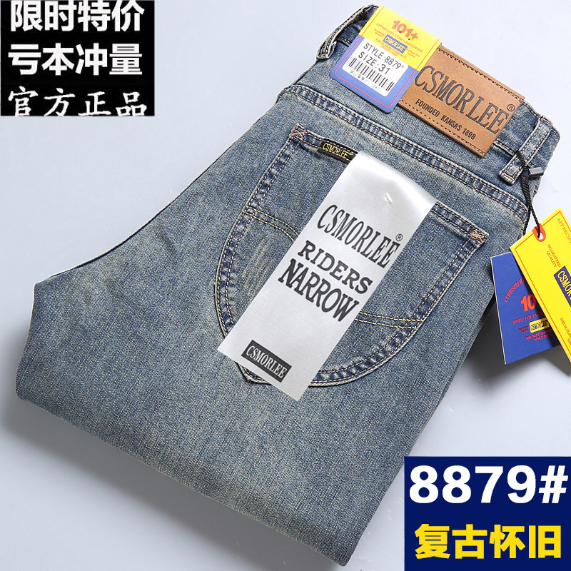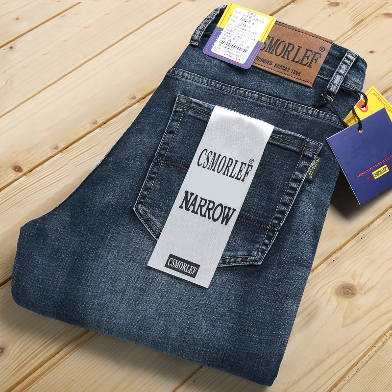 CSMORLEE 청바지 남성 가을 스트레치 스트레이트 루즈 비즈니스 바지 남성 바지 레트로 디스트레스드스토어 가기