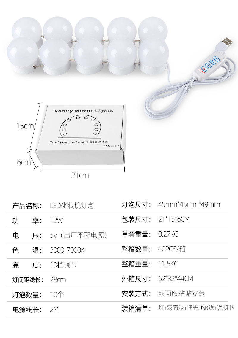 할리우드 미러 헤드 라이트 LED 메이크업 전구 5vusb 3 색 미러 헤드 라이트 거울 셀카 뷰티 라이트 필 전구스토어 가기