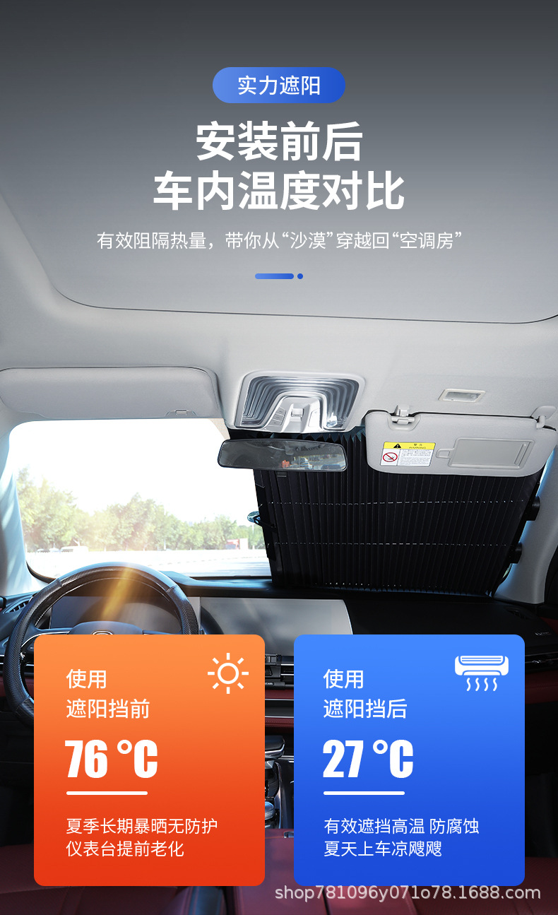 • 후방 기어 [46cm] 자동 개폐식 차양 [단열 알루미늄 호일 + 강력 흡입 컵]]