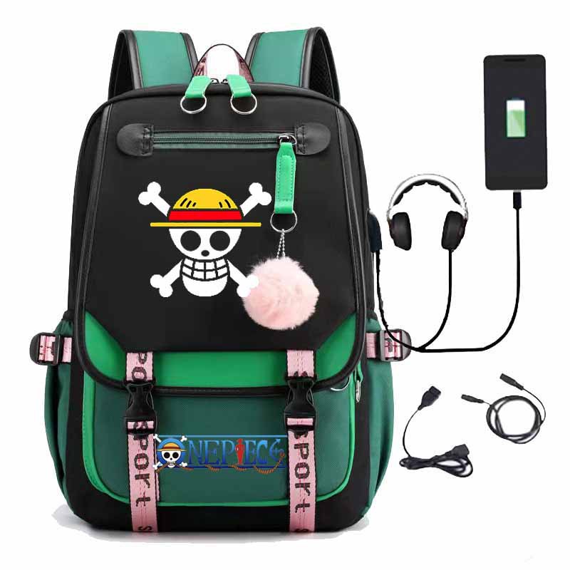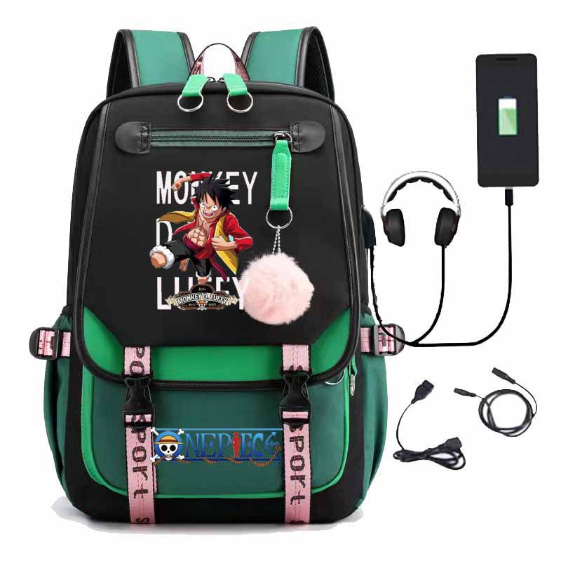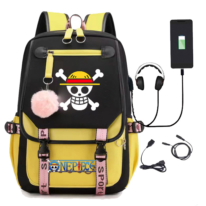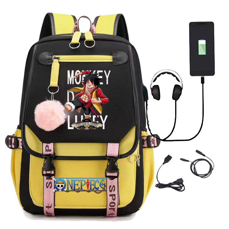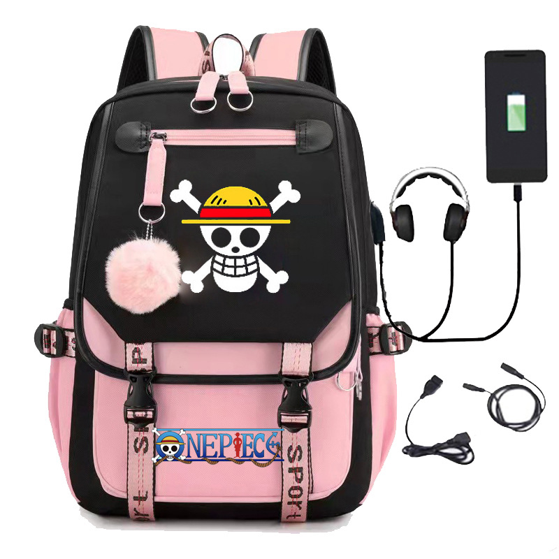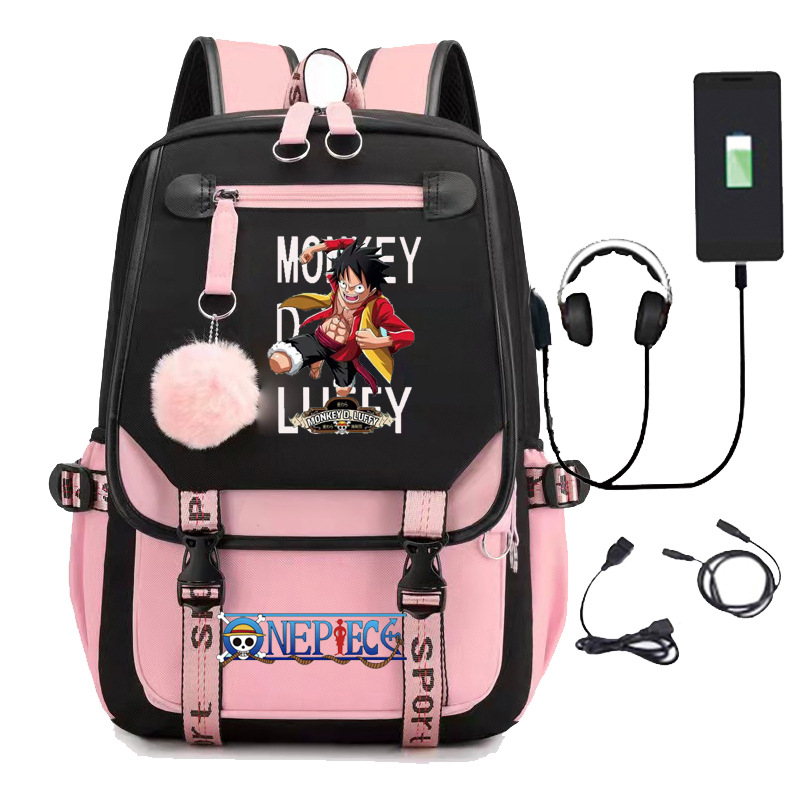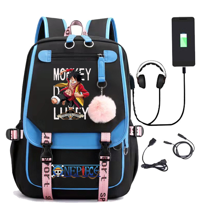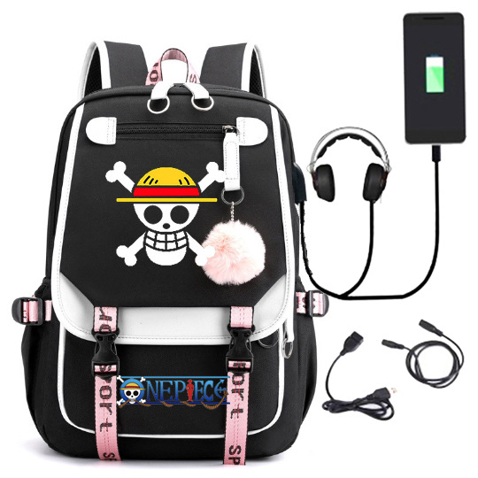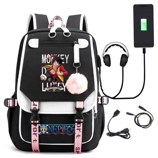 원피스 루피 USB 충전 가방 책가방 배낭 컴퓨터 가방 캠퍼스 스타일 대용량