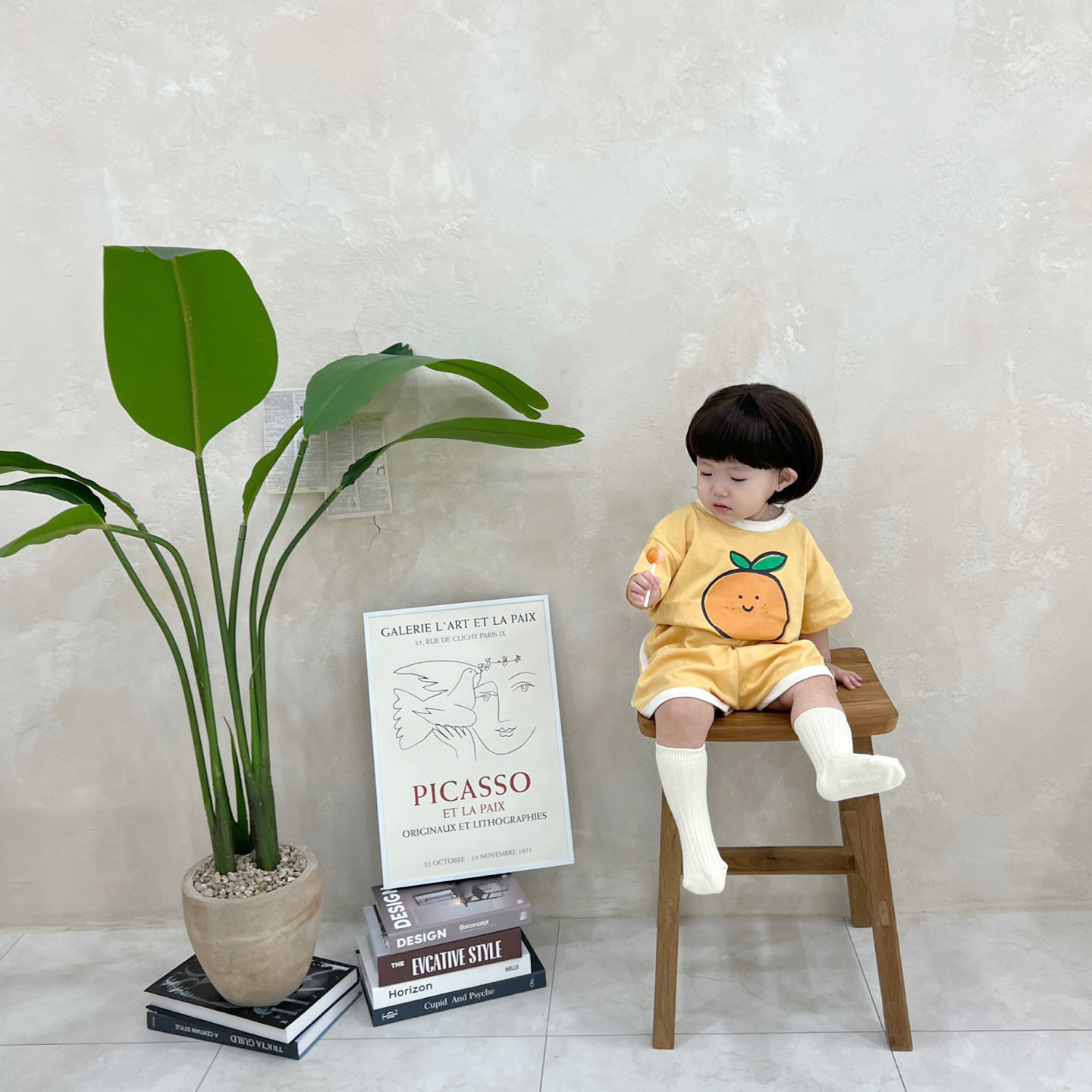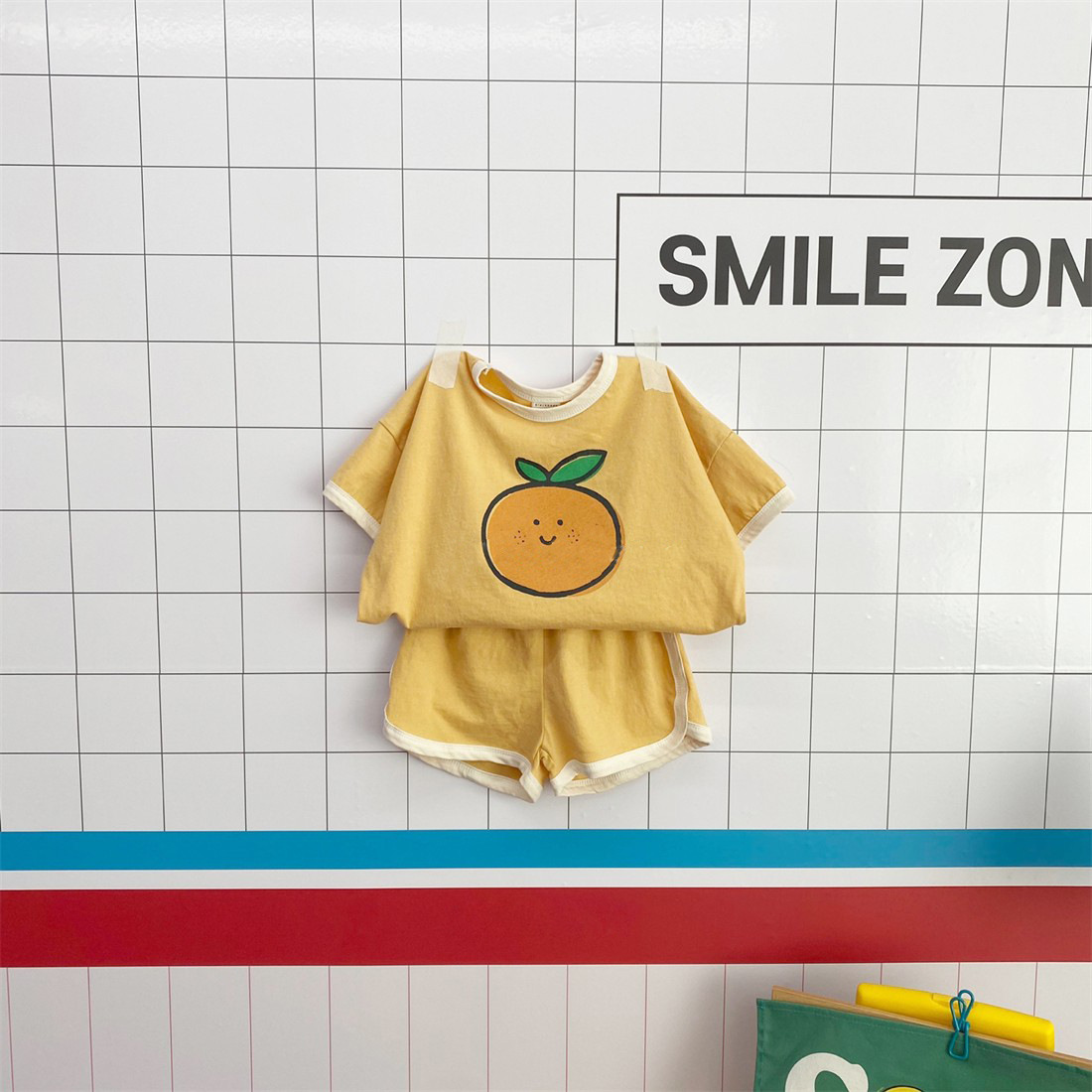 여름 남성과 여성의 아기 얇은면 귀여운 과일 인쇄 반팔 티셔츠 + 반바지 세트 조수의 한국어 버전스토어 가기