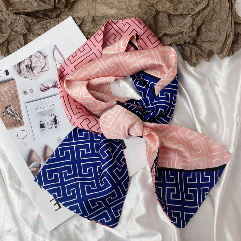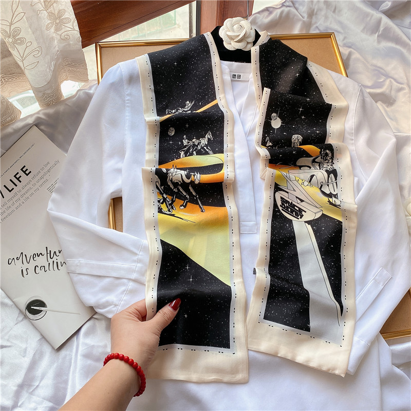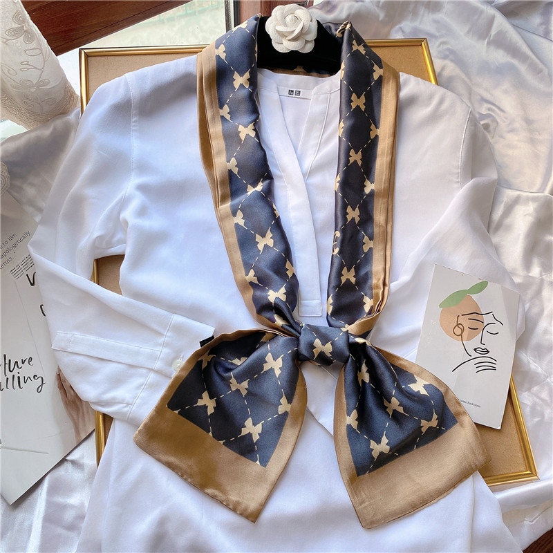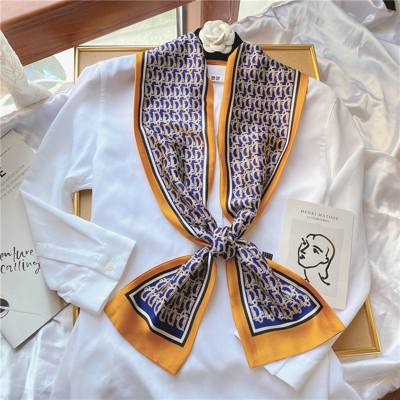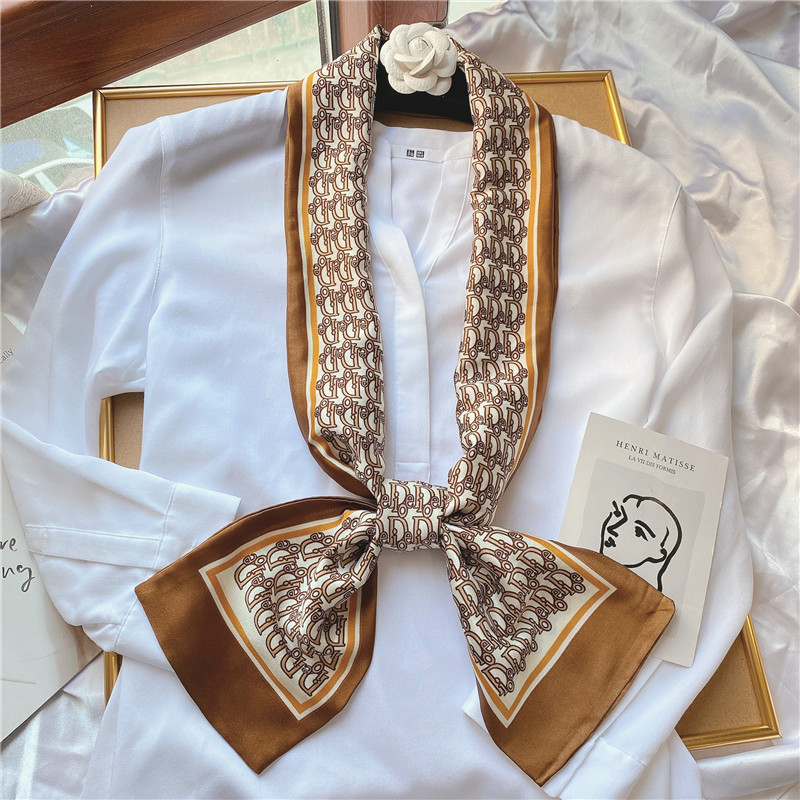 봄 모든 경기 녹색 정글 실크 스카프 여자의 긴 스카프 착용 세트 넥타이 가방 리본 얇은 좁은 스카프스토어 가기