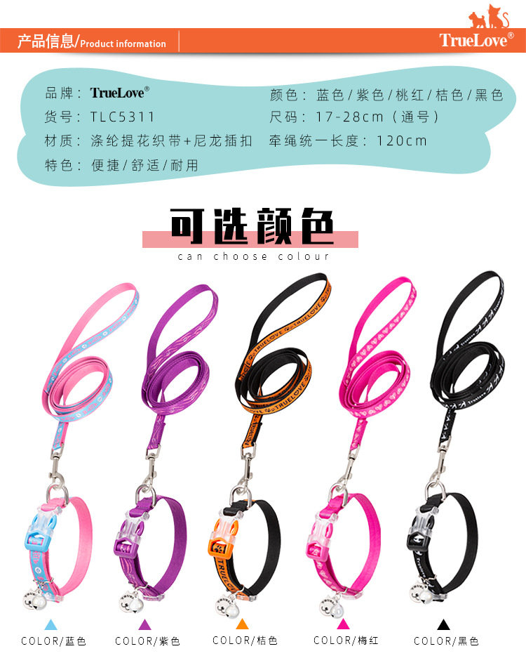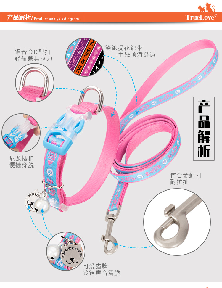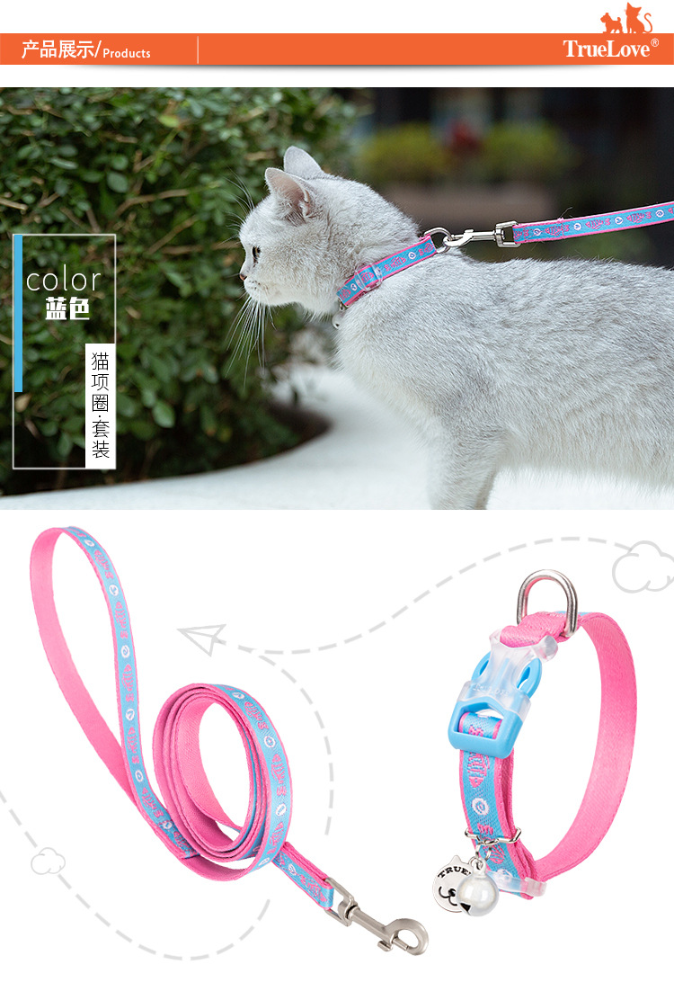 Truelove 고양이 가죽 끈 세트 링 고양이 특수 안티 브레이크 칼라 토끼 애완 동물 용품