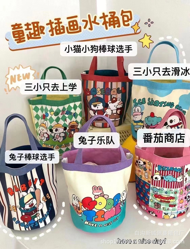 2023 Yeyu 일러스트 레이터 귀여운 모든 경기 버킷 캔버스 핸드백 한국 미라 가방 도시락 가방 유치원