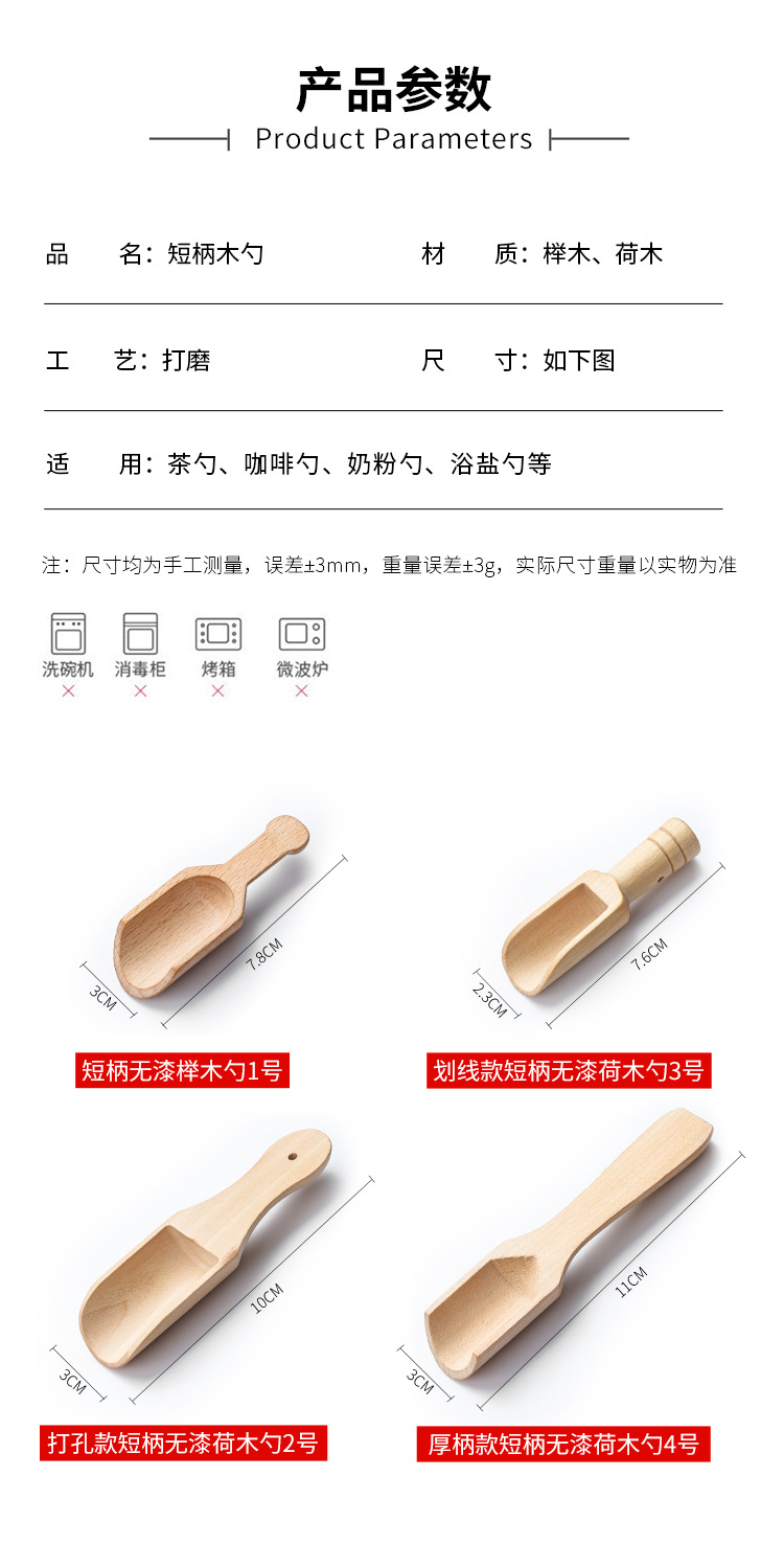 원목 숟가락 차 숟가락 무도색 나무 꿀 숟가락 커피 계량 숟가락 목욕 소금 계량 숟가락 분유 숟가락 목재 중국풍스토어 가기