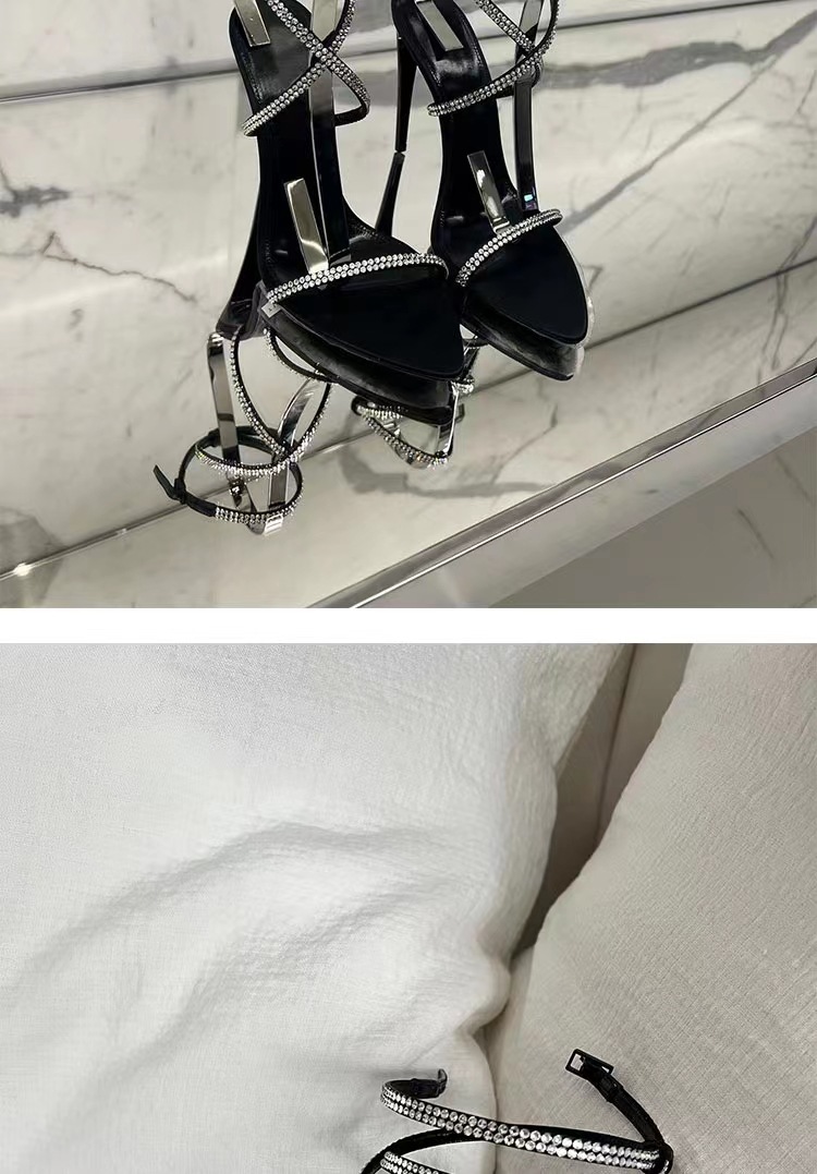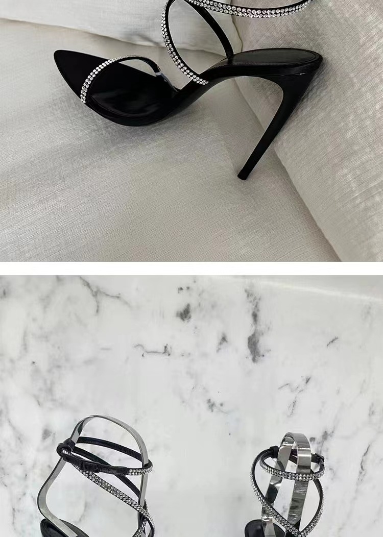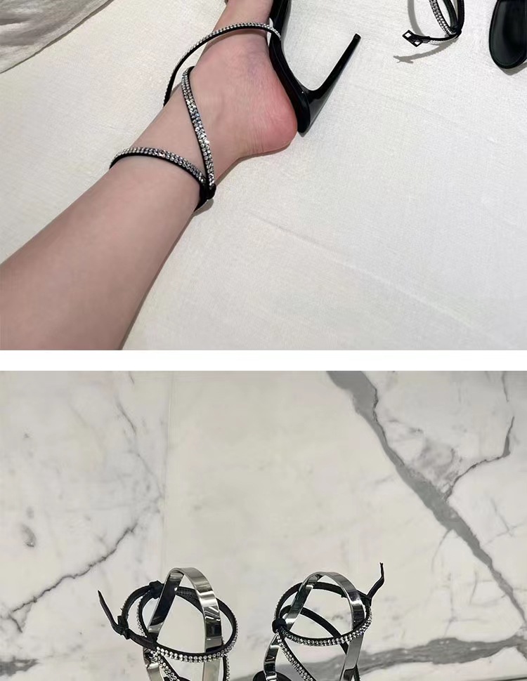 2026년 신상 오픈토 뾰족코 크리스탈 크로스 스트랩 중공 섹시 여성용 슬림힐 샌들스토어 가기