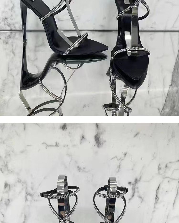 2026년 신상 오픈토 뾰족코 크리스탈 크로스 스트랩 중공 섹시 여성용 슬림힐 샌들