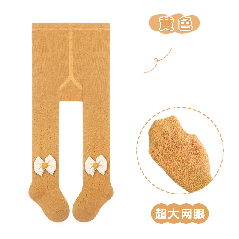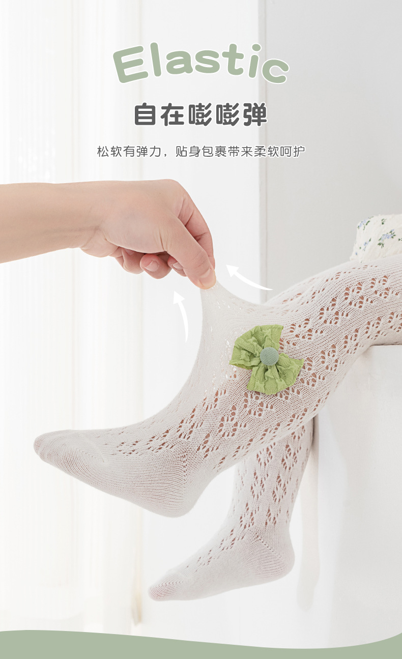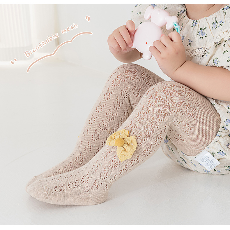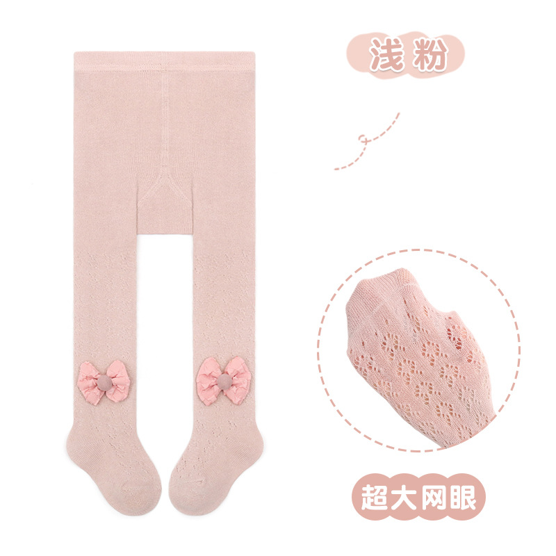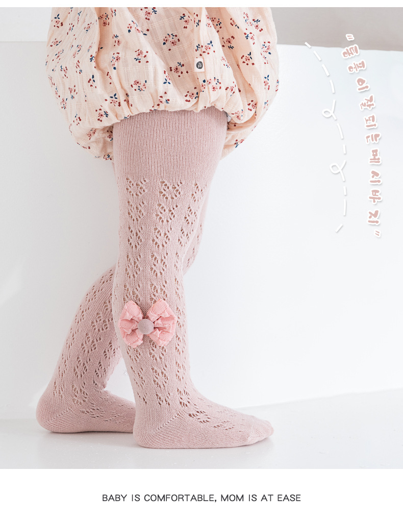 스페인 스타일 얇은 면 레이스 대형 메쉬 유아 및 어린이용 레깅스 리본 장식 팬티스타킹