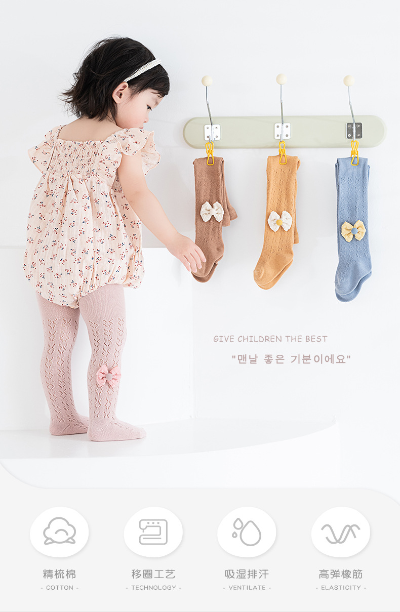 스페인 스타일 얇은 면 레이스 대형 메쉬 유아 및 어린이용 레깅스 리본 장식 팬티스타킹스토어 가기
