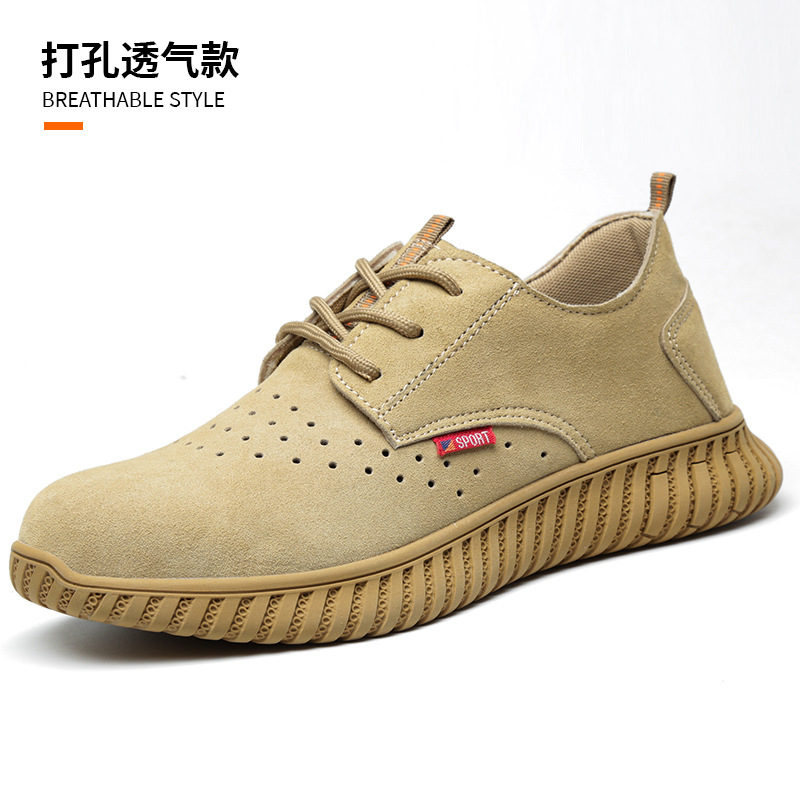 정품 가죽 용접 신발, 소가죽 로우탑, 사계절 노동 보호 신발, 충격 방지 및 펑크 방지, 여름 통기성 및 내마모성 고무 밑창스토어 가기