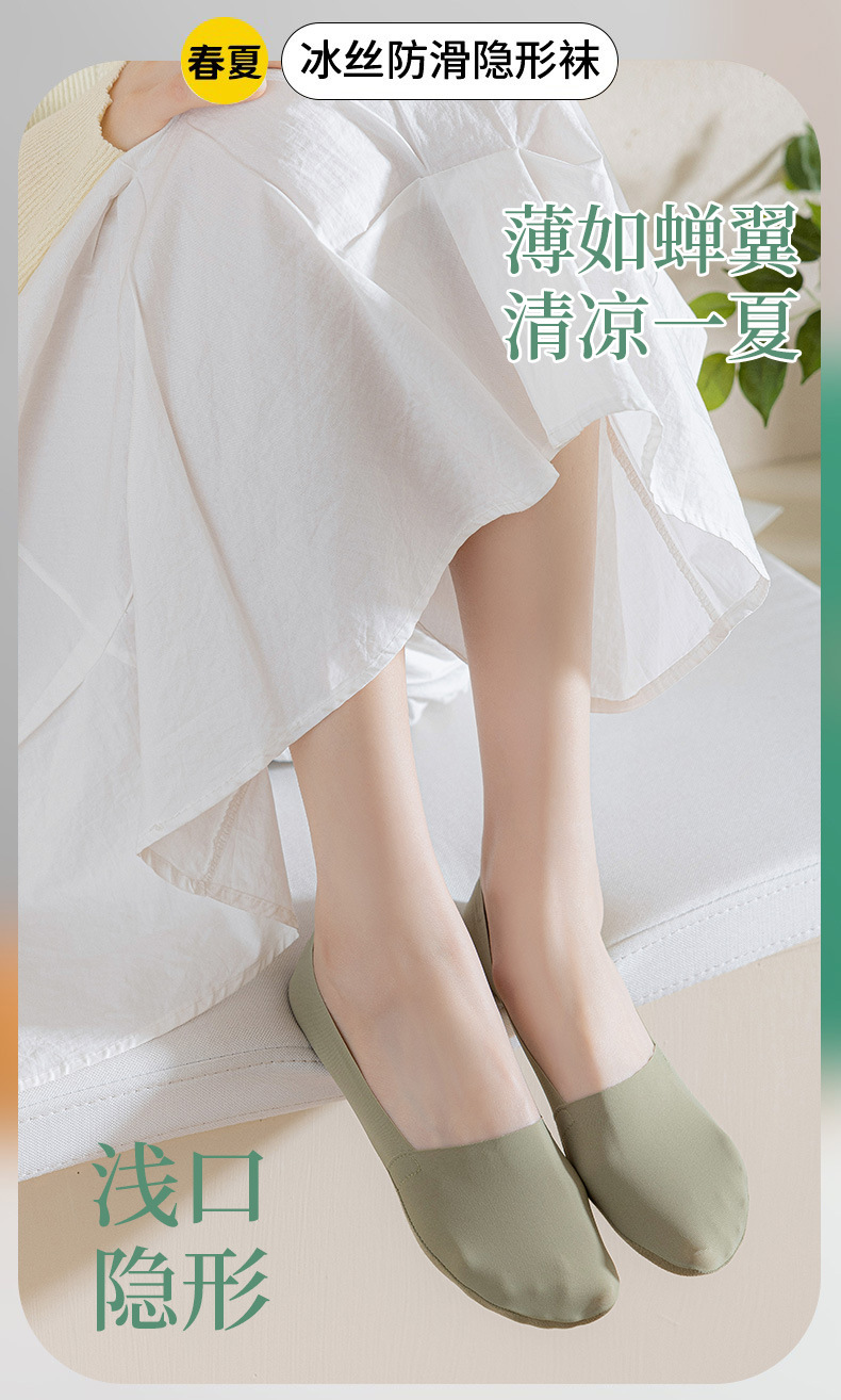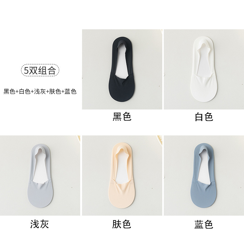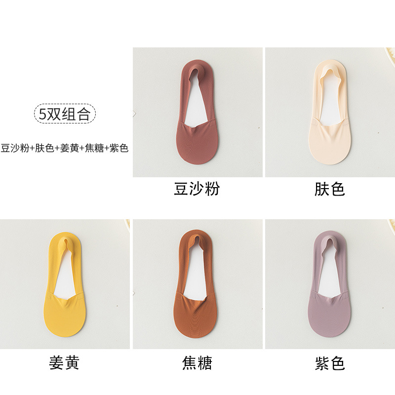 양말 여성용 여름 보트 양말 얇은 얼음 실크 보이지 않는 양말 미끄럼 방지 떨어지는 단색 모든 일치 면 바닥 얕은 양말