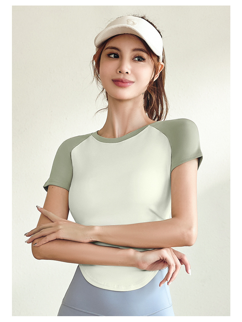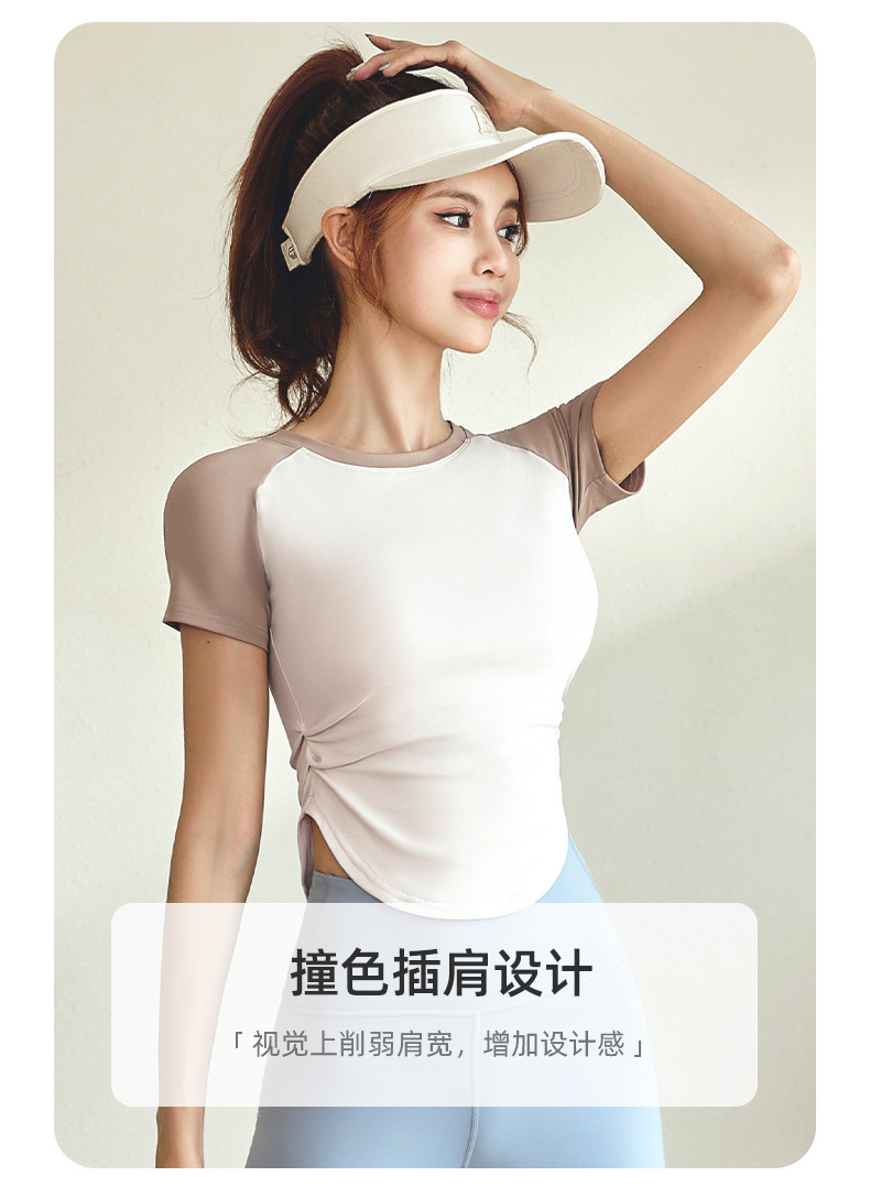 주이탕 배색 플리츠 요가복 여성용 허리 슬리밍 누드 느낌 요가 스포츠 아웃도어 피트니스 탑