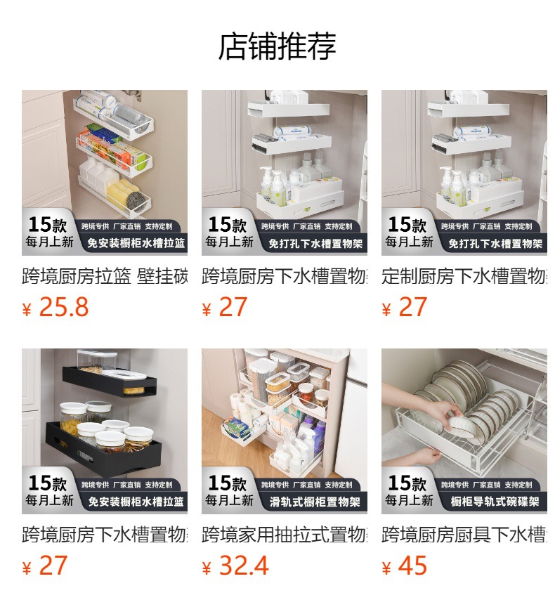 싱크대 아래 가정용 수납선반, 펀치 없는 철제 풀아웃 수납선반, 캐비닛 슬라이드 레일, 주방 바구니스토어 가기