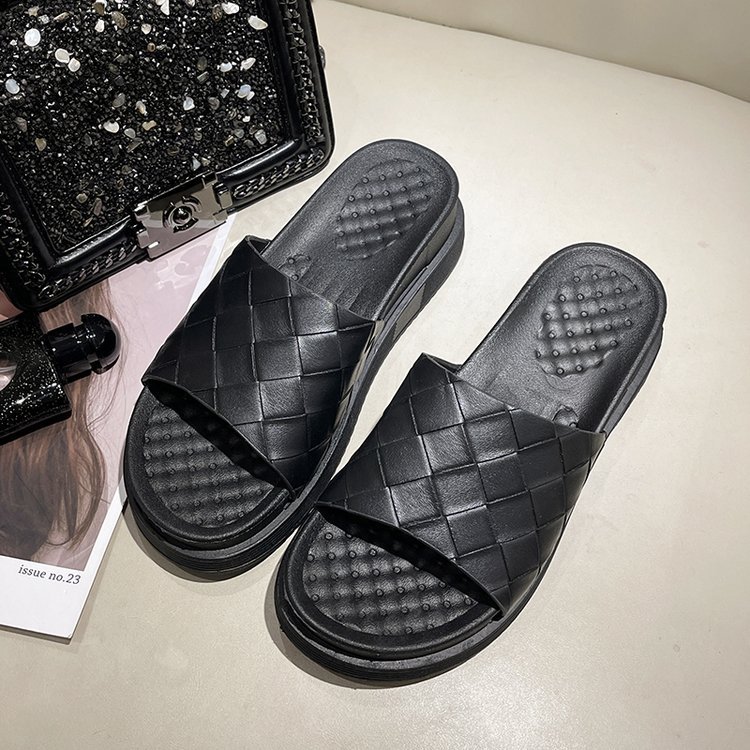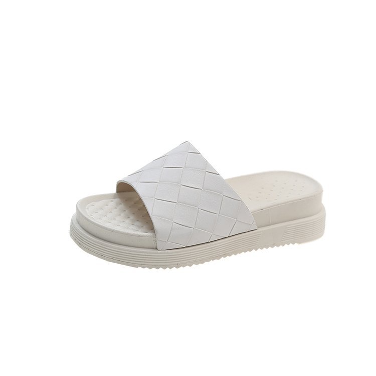프린트 플랫 바닥 오픈 토 슬리퍼 여성용 2023 여름 새로운 야외 두꺼운 밑창 격자 무늬 여성 슬리퍼 도매