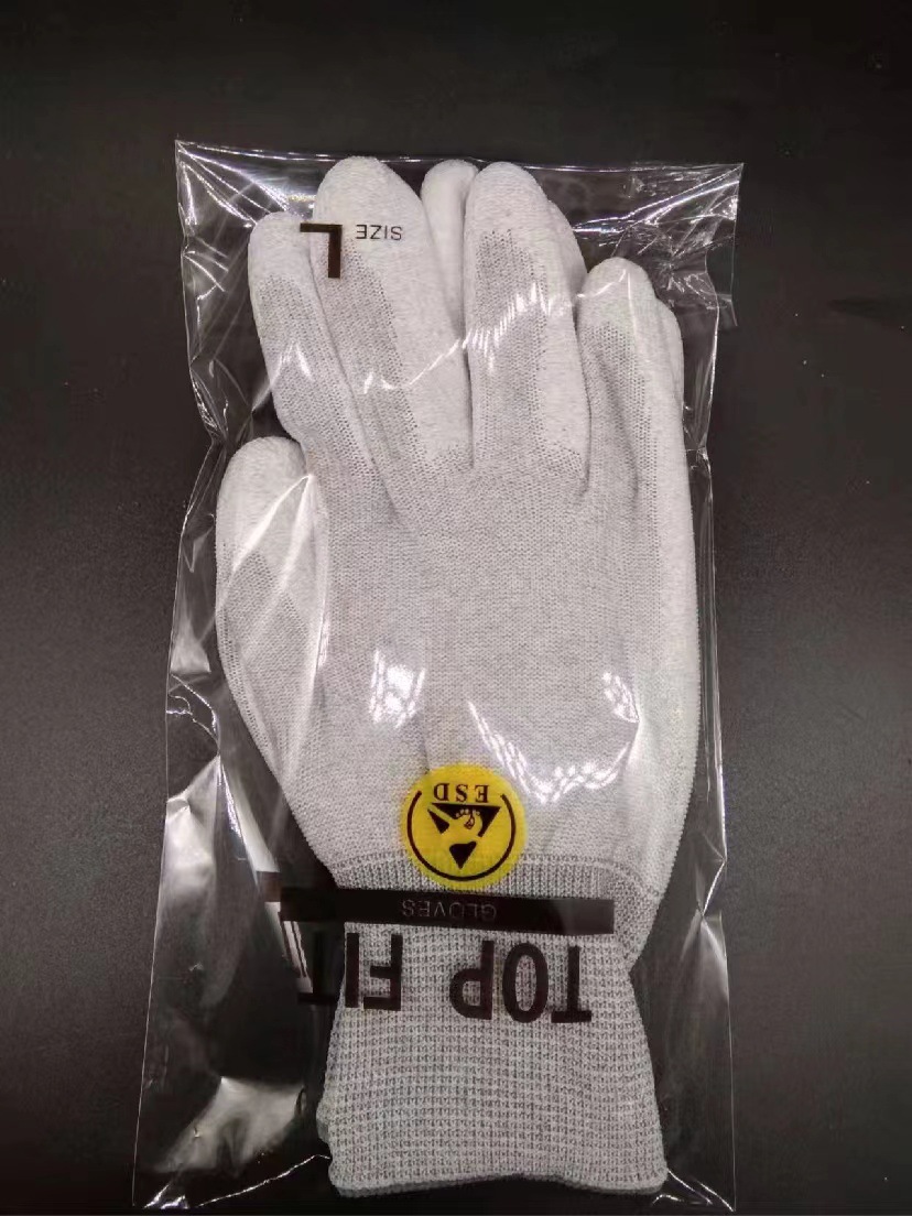탄소 섬유 정전기 방지 노동 장갑 PU 손가락 코팅 손바닥 장갑 먼지 없는 전자 공장 작업장 얇은 공장 도매