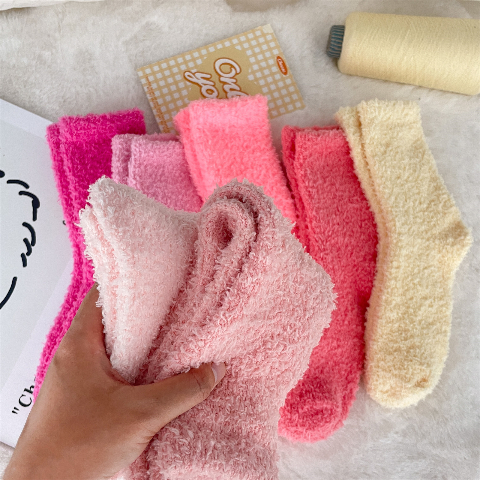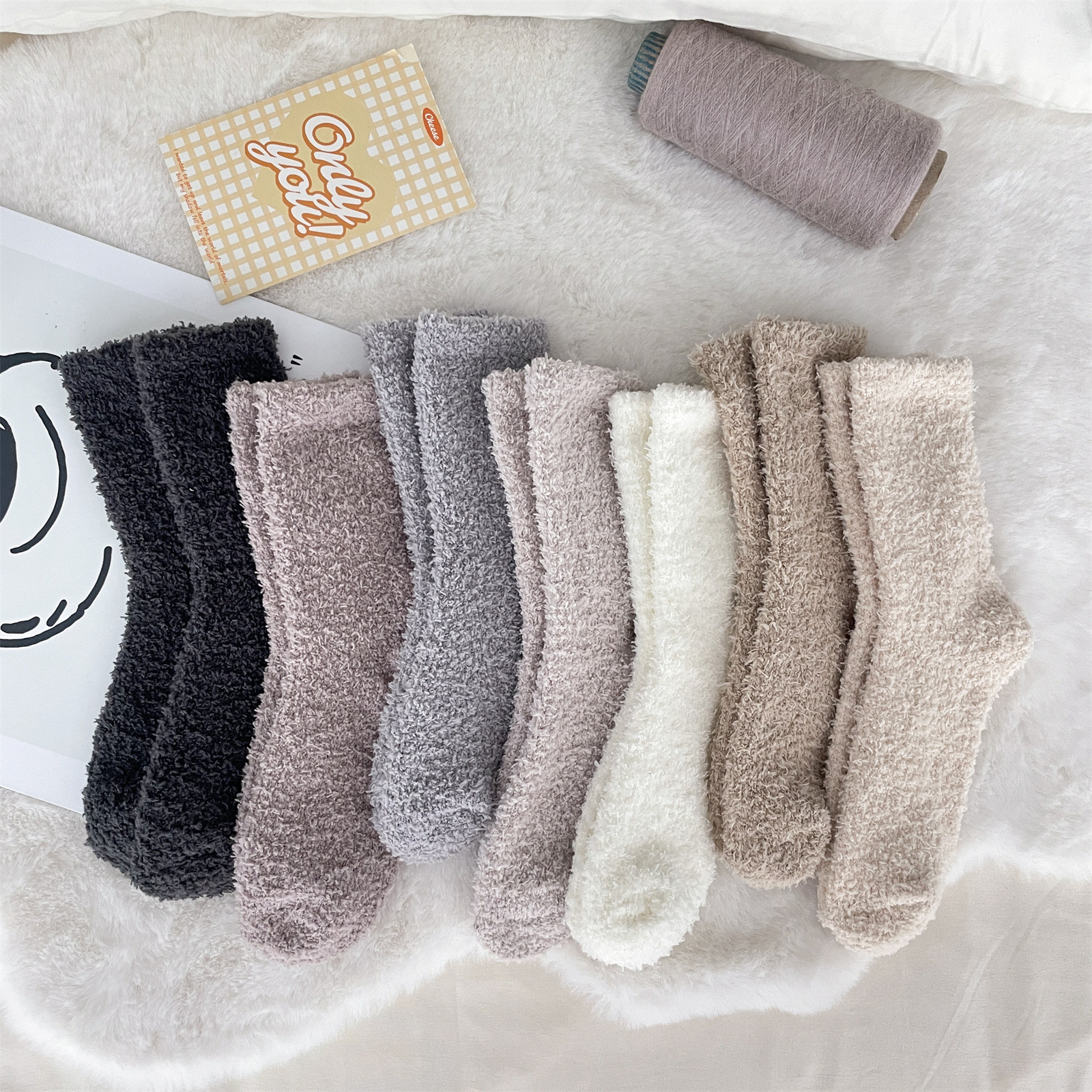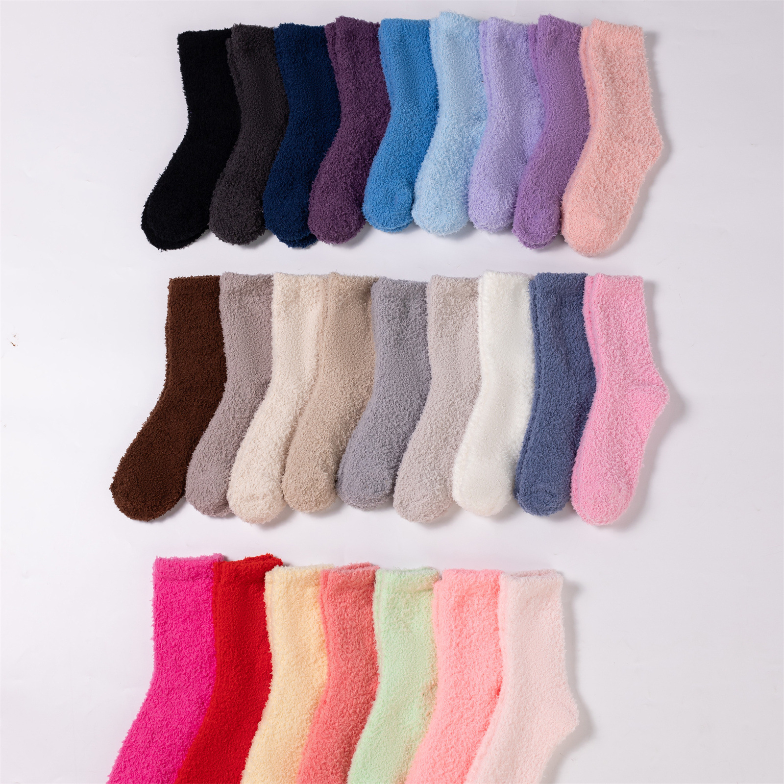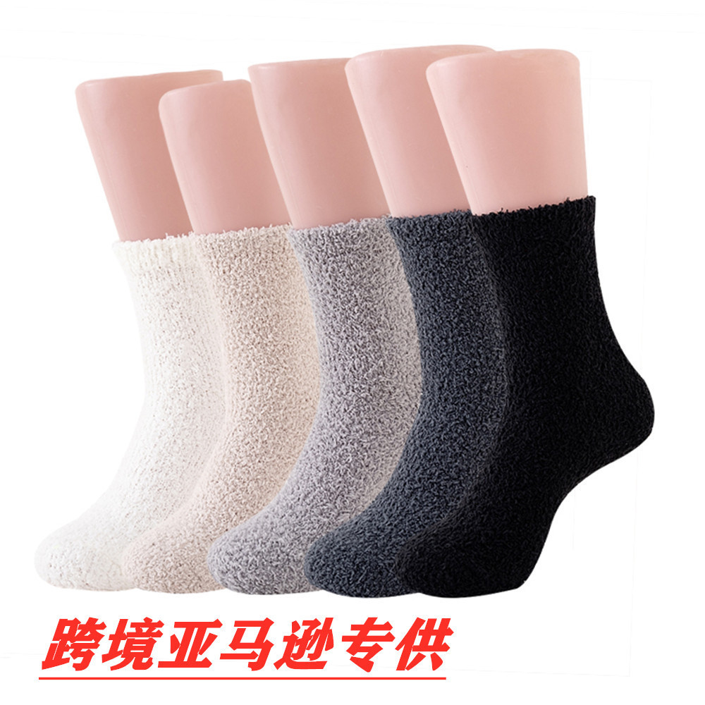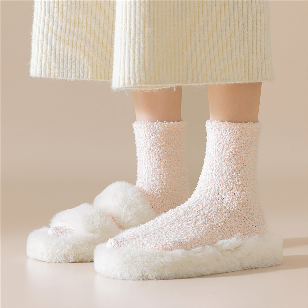 남녀공용 슬리퍼 양말, 보송보송한 무보풀 단색 캔디 컬러 산호벨벳 양말, 바닥 양말, 수면 양말을 공급합니다.