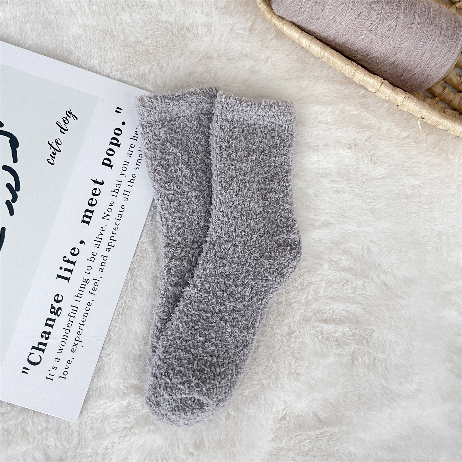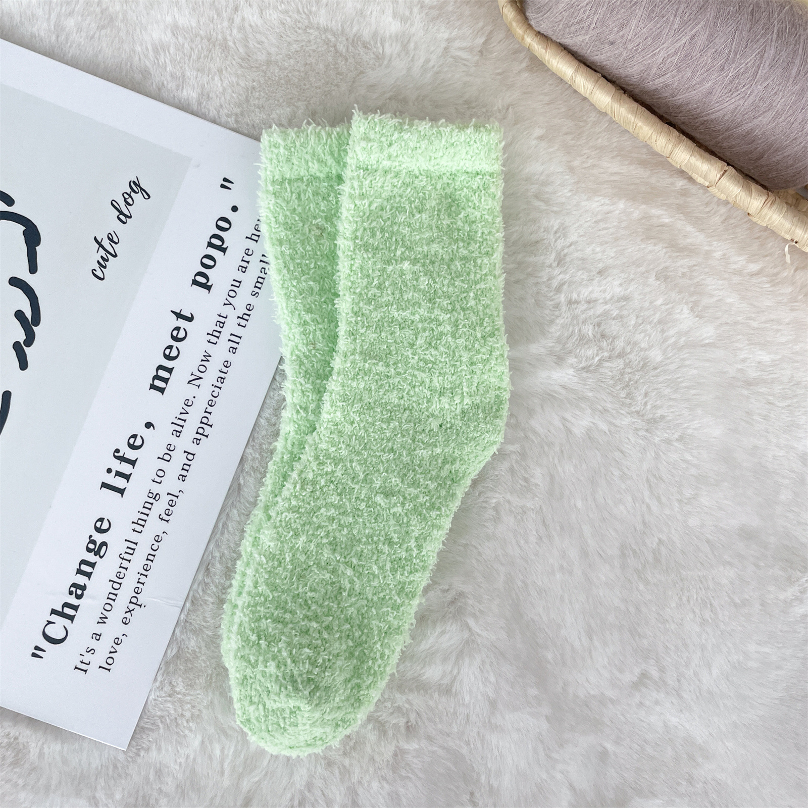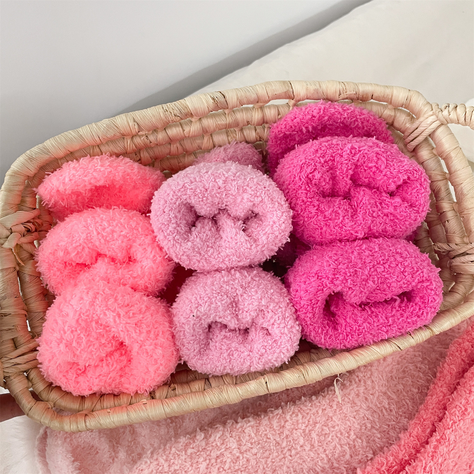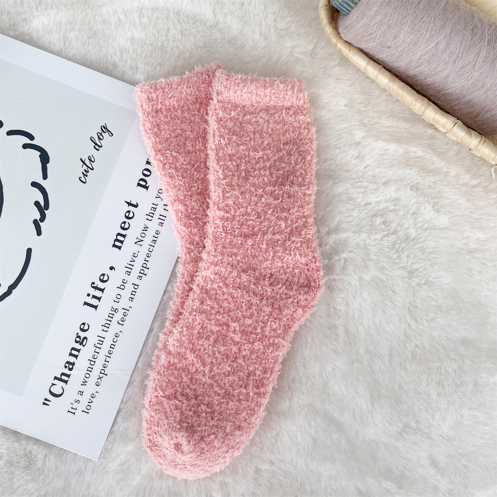 남녀공용 슬리퍼 양말, 보송보송한 무보풀 단색 캔디 컬러 산호벨벳 양말, 바닥 양말, 수면 양말을 공급합니다.