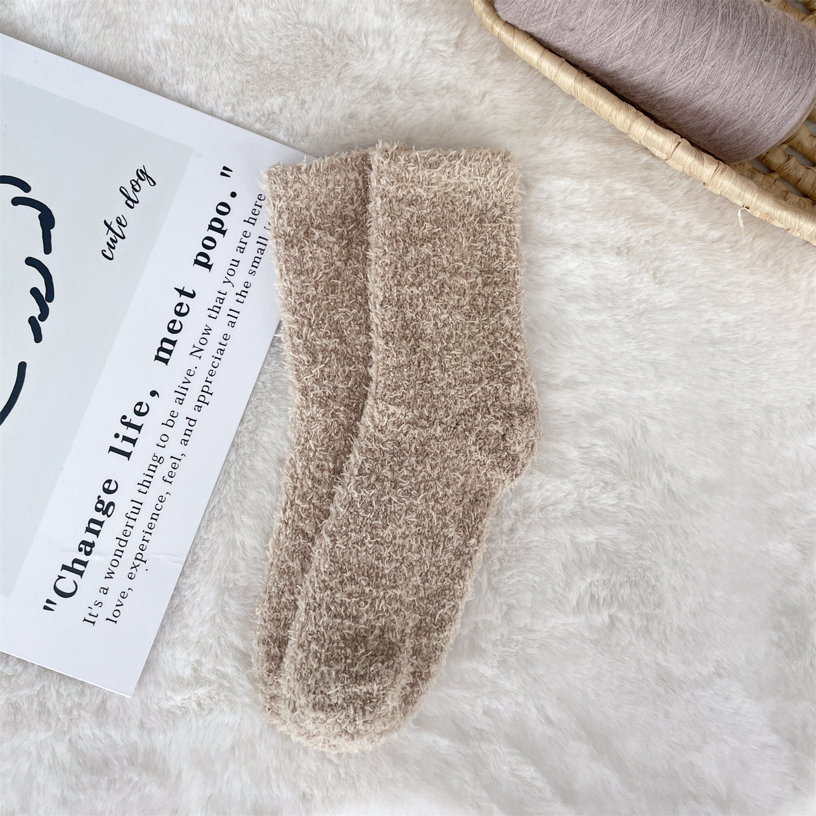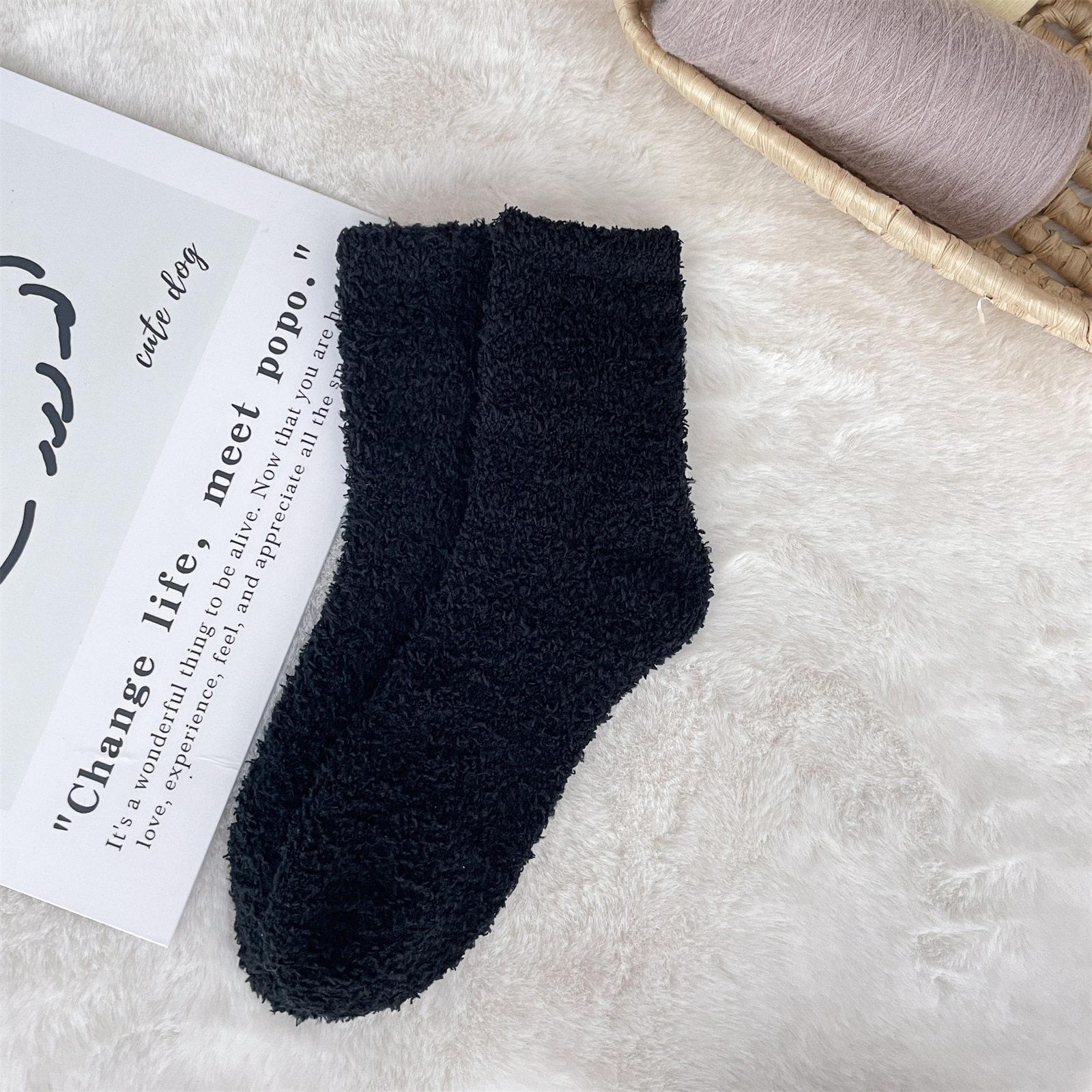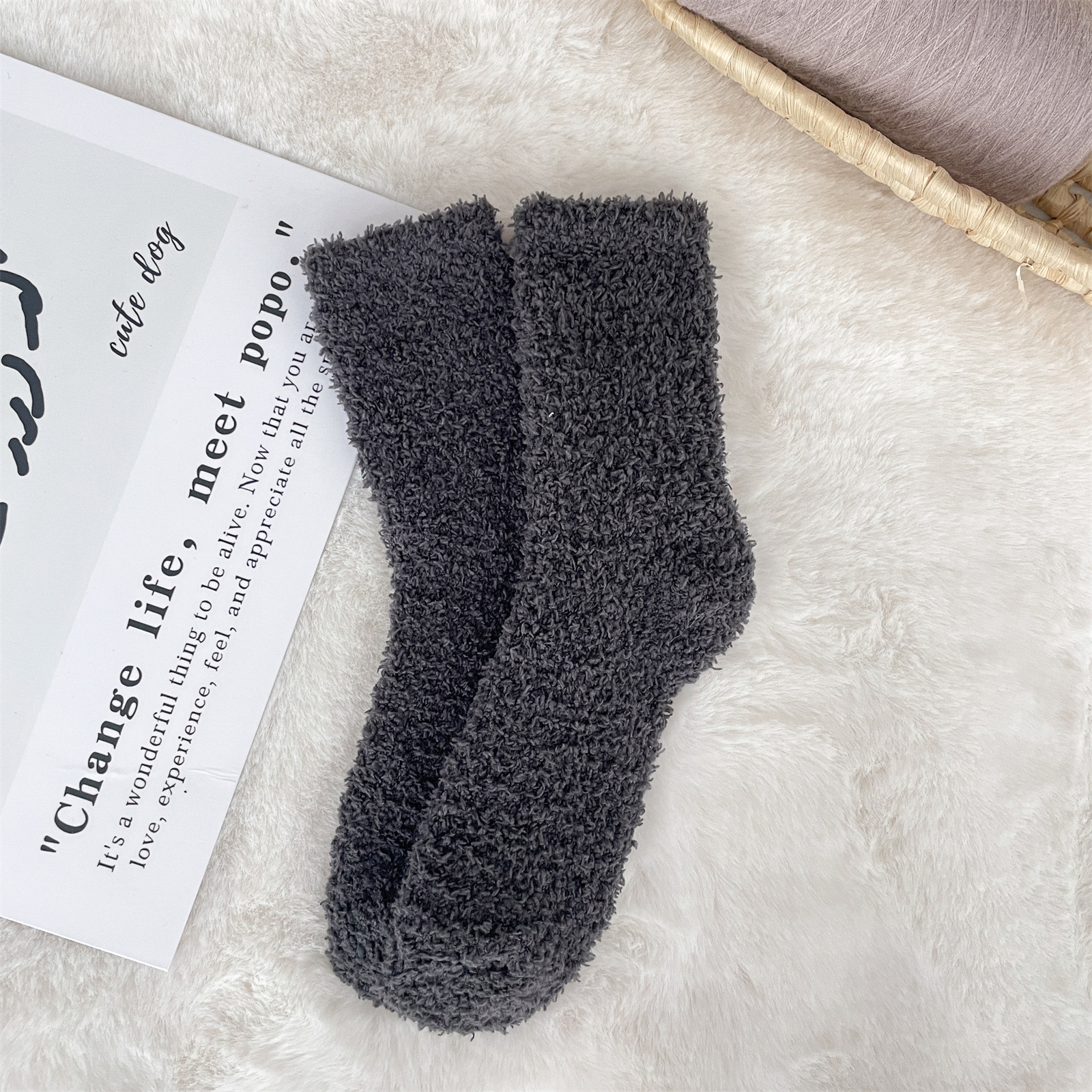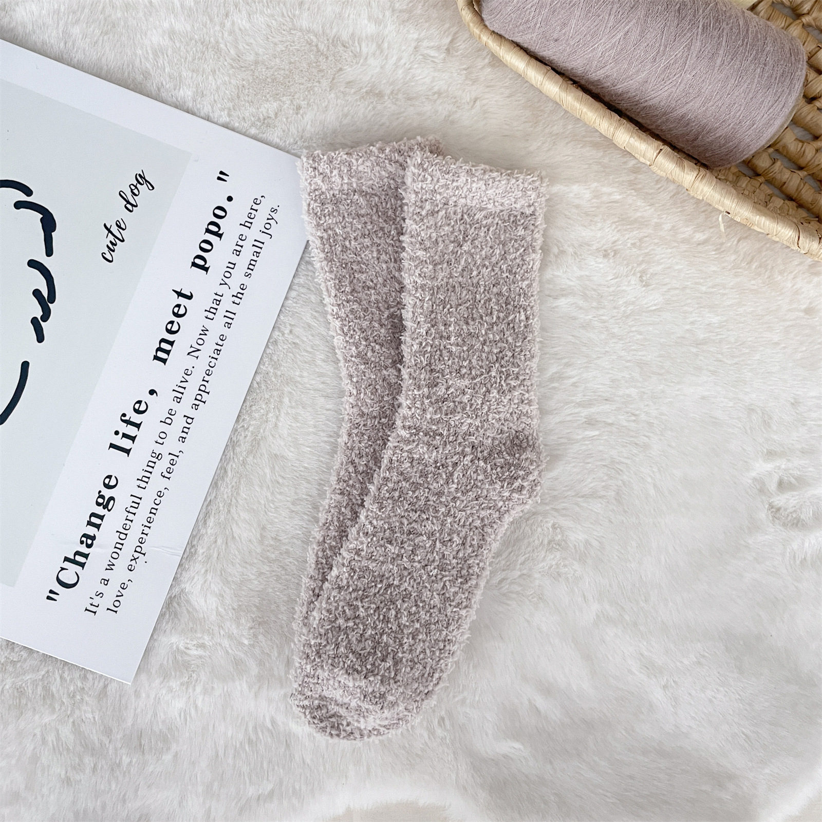 남녀공용 슬리퍼 양말, 보송보송한 무보풀 단색 캔디 컬러 산호벨벳 양말, 바닥 양말, 수면 양말을 공급합니다.