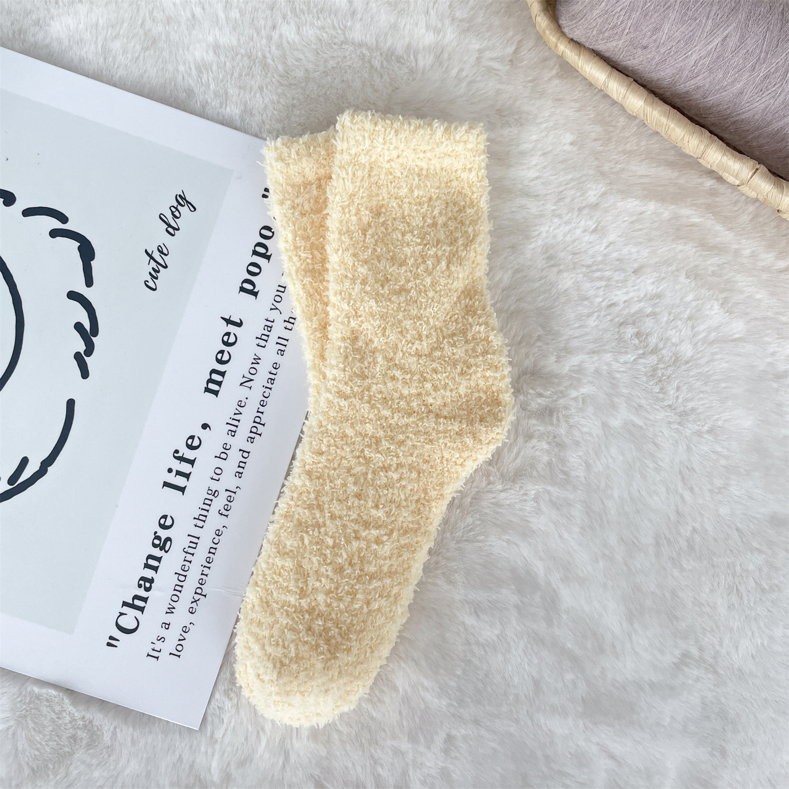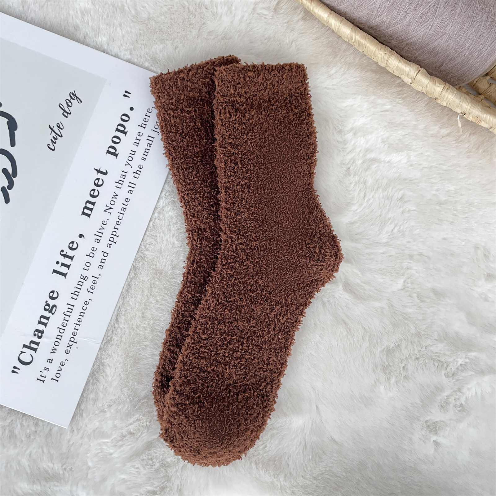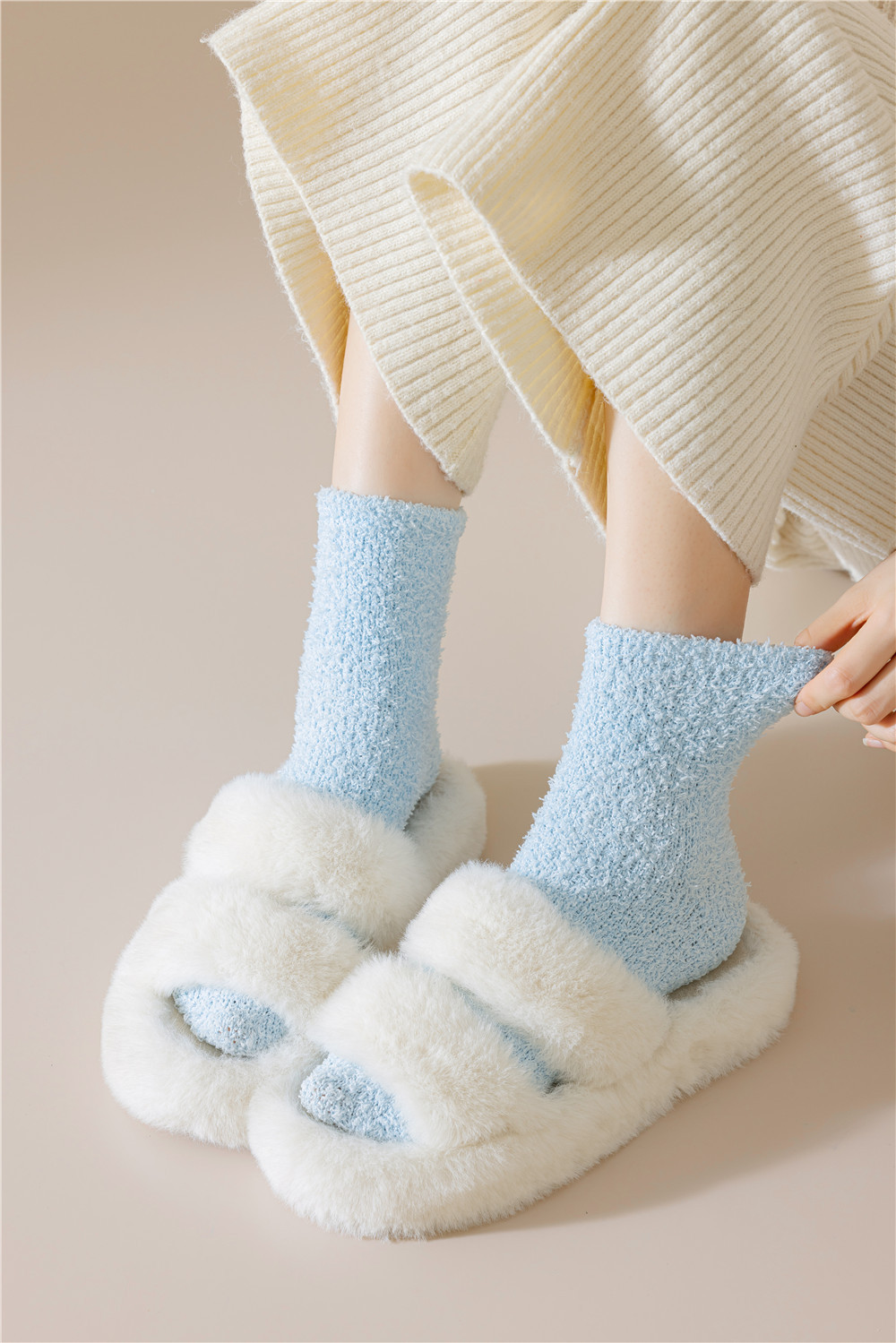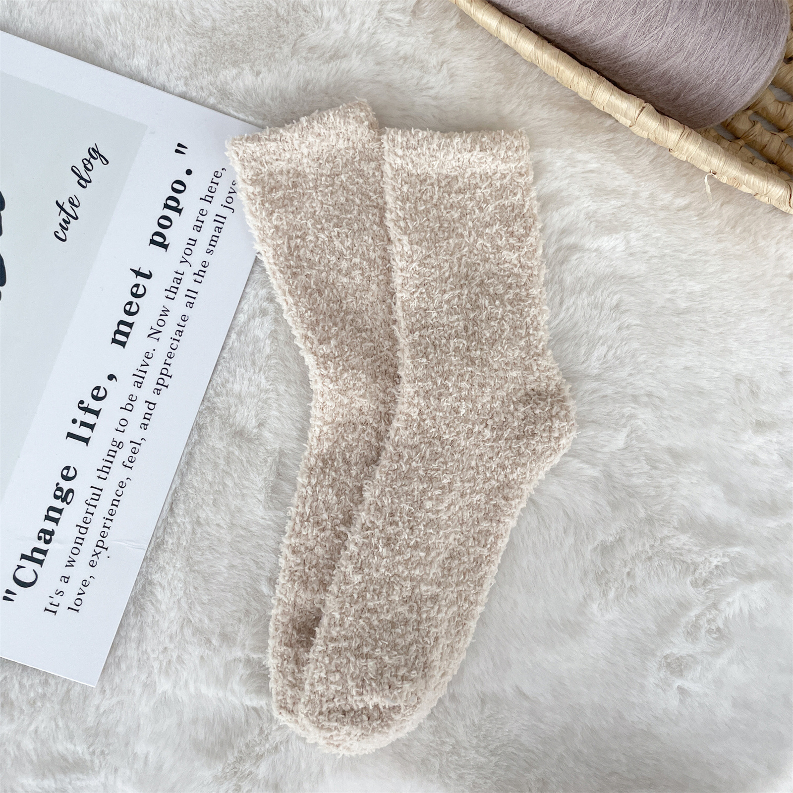 남녀공용 슬리퍼 양말, 보송보송한 무보풀 단색 캔디 컬러 산호벨벳 양말, 바닥 양말, 수면 양말을 공급합니다.
