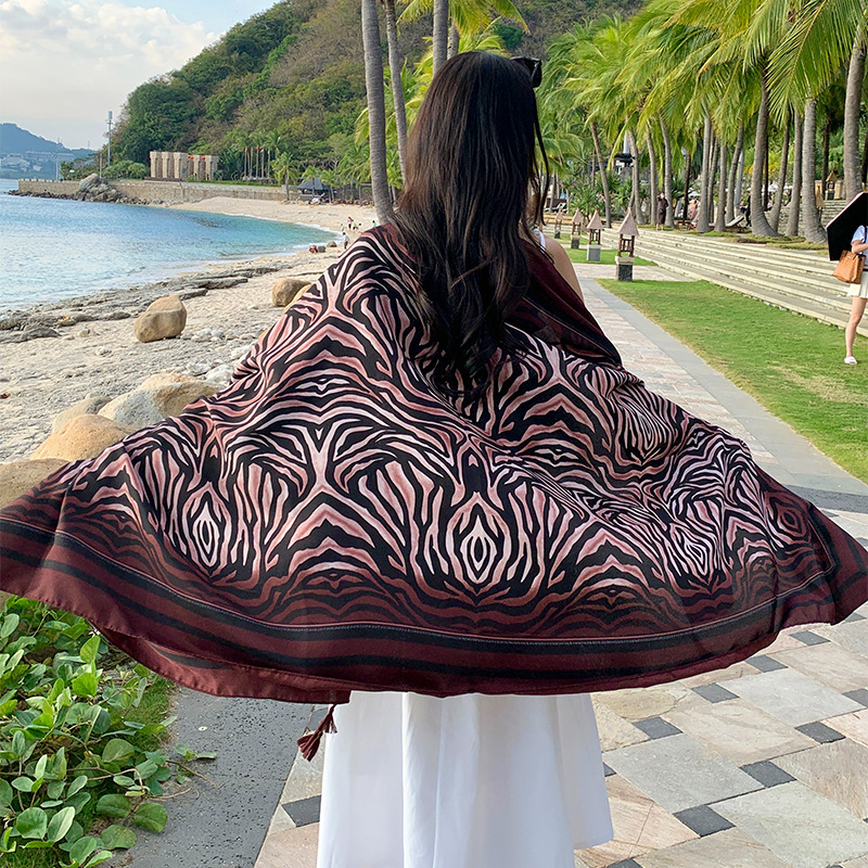 2023 새로운 윈난 관광 에스닉 스타일 얼룩말 스트라이프 스카프 모든 매치 패션 술 자외선 차단제 숄 비치 타올