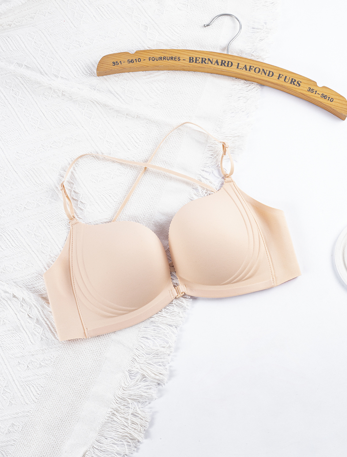 여성을 위한 봄광택 무봉제 앞버튼 와이어 프리 브라, 심플한 푸쉬업, 편안한 중간 두께 컵 크로스백 속옷스토어 가기