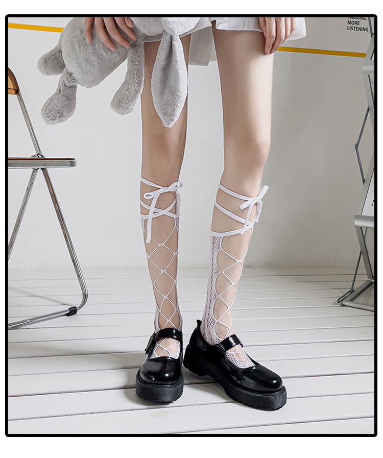 여름 얇은 in 검은 양말 여성 양말 jk 스타킹 종아리 양말 스트랩 중공 그물 빨간색 긴 튜브 화이트