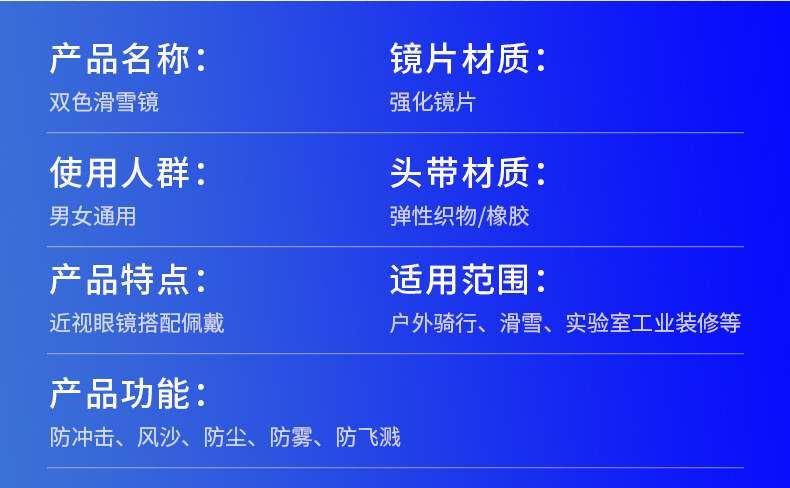 • 2 색 스키 고글 (안개 방지 렌즈) 파란색