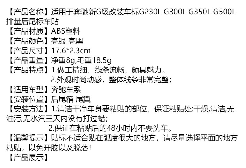 메르세데스-벤츠 G-클래스 로고 G230L G300L G350L G500L 바디 스티커 변위 라벨 리어 엔드 스티커에 적합스토어 가기