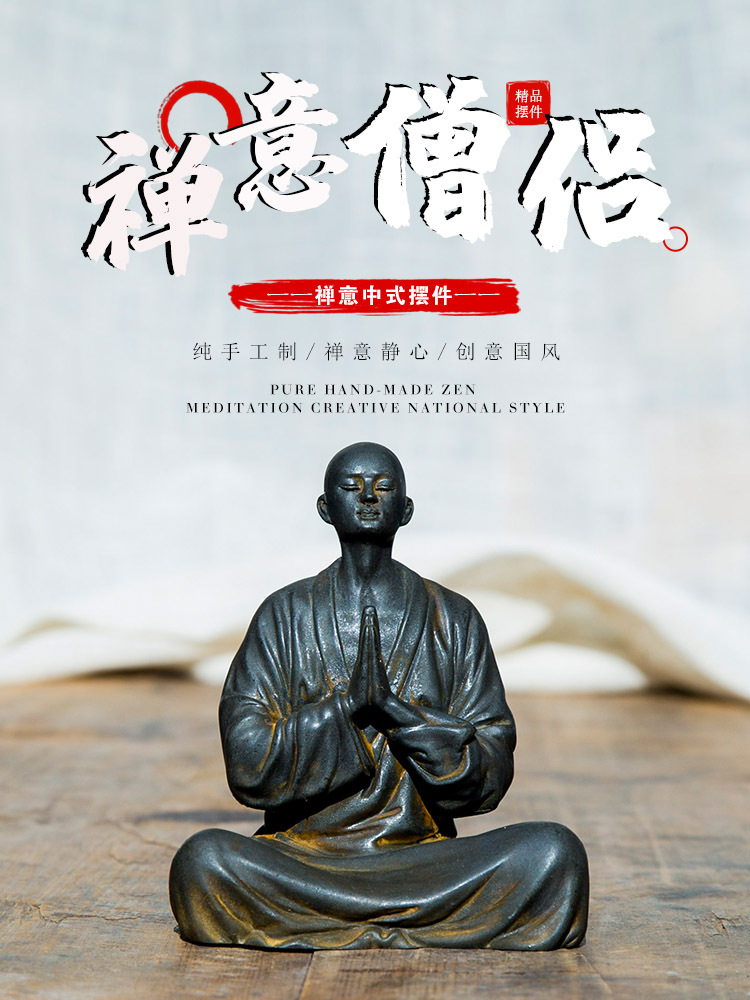 새로운 중국식 선(禪) 스타일의 스님 장식품, 거실 테이블 장식, 수제 빈티지 공예품스토어 가기