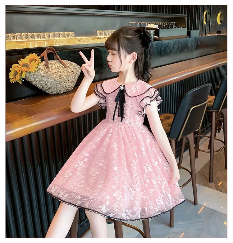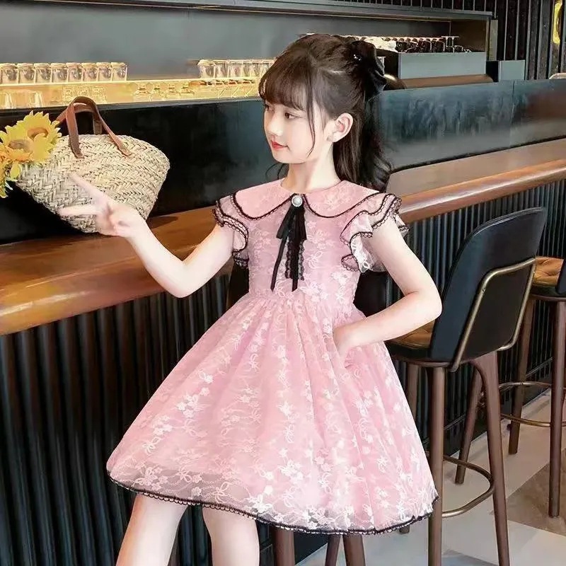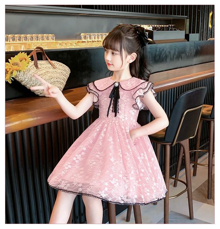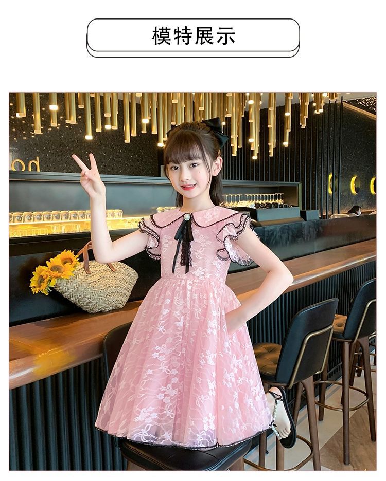 여자 여름 드레스 어린이 유행 공주 드레스 큰 어린이 여름 어린 소녀 2025 새로운 레이스 드레스스토어 가기