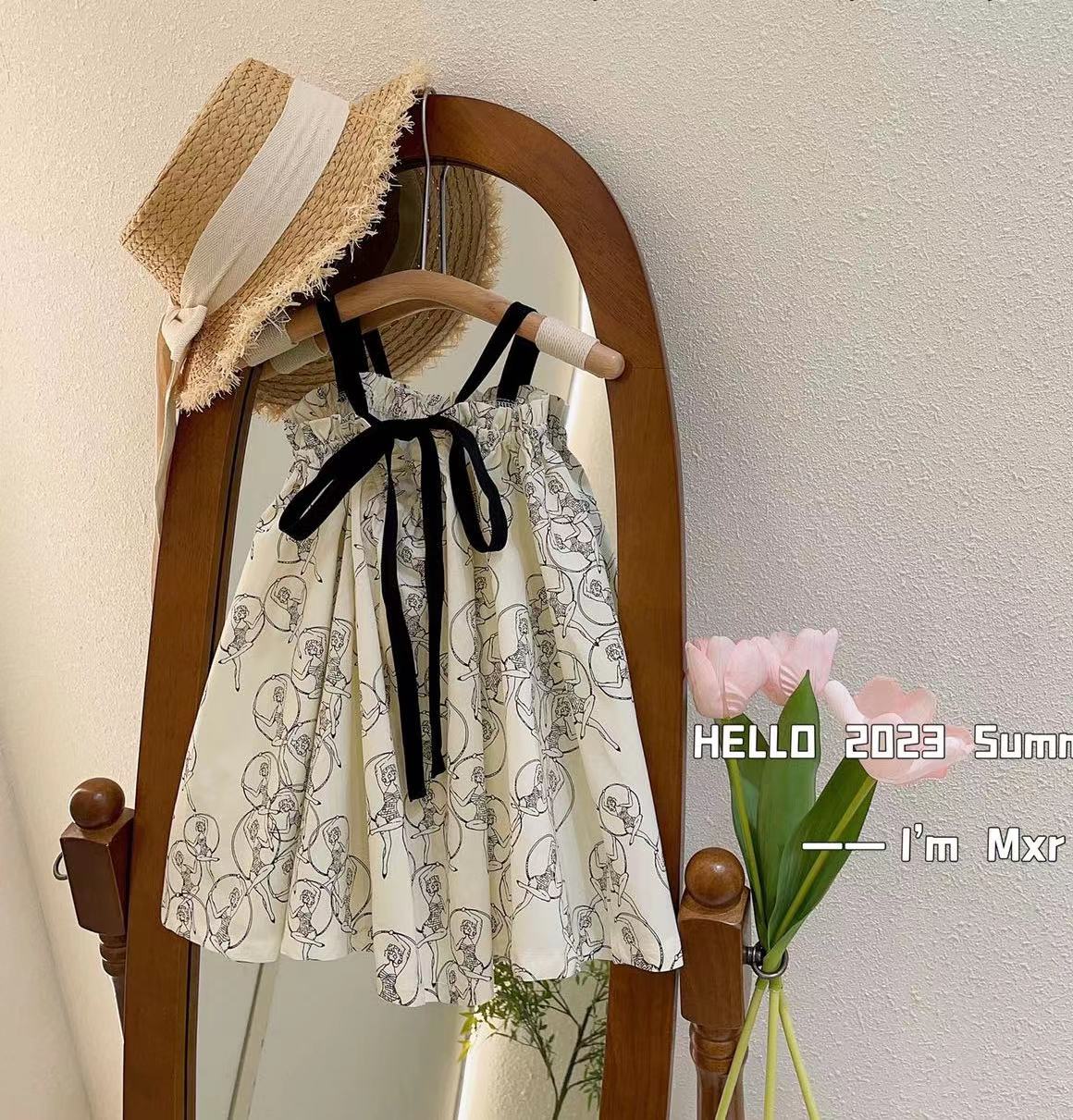小童夏装吊带洋气背心裙女宝宝夏季旅游凉快裙子新款印花度假风裙