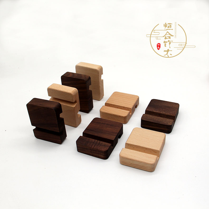 나무 휴대 전화 기본 단단한 나무 휴대 전화 랙 나무 평면 너도밤 나무 데스크탑 브래킷 레이저 로고 도매스토어 가기