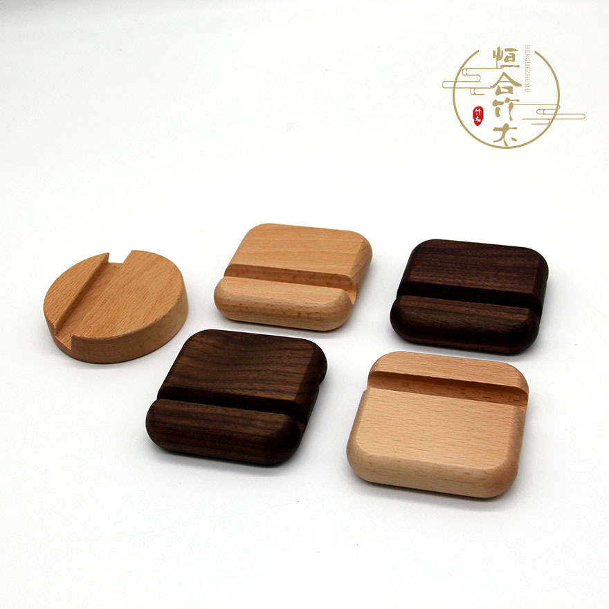 나무 휴대 전화 기본 단단한 나무 휴대 전화 랙 나무 평면 너도밤 나무 데스크탑 브래킷 레이저 로고 도매