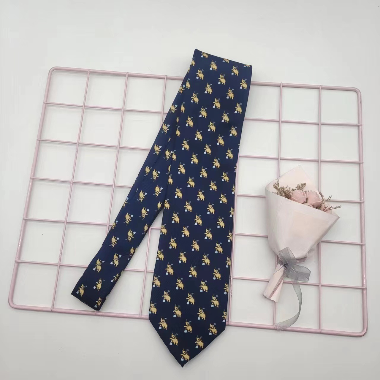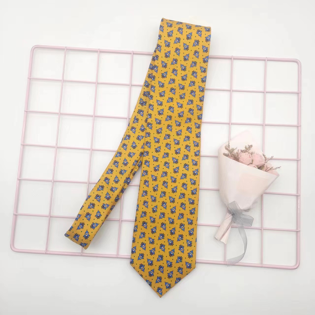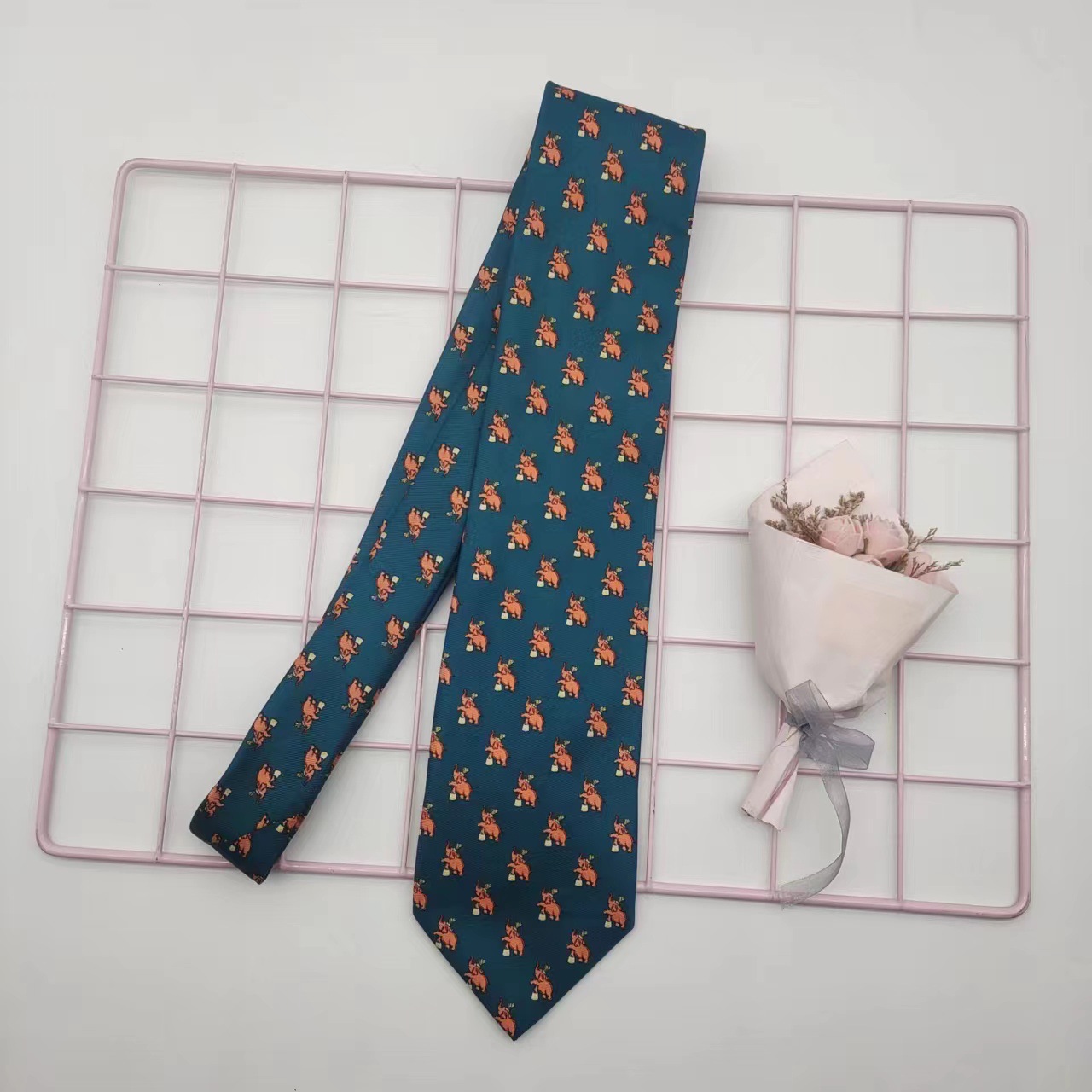 옐로우 레드 블루 그레이 그린 만화 동물 복고풍 패턴 넥타이 와이드 9cm 남성과 여성의 인쇄 핸드 타이