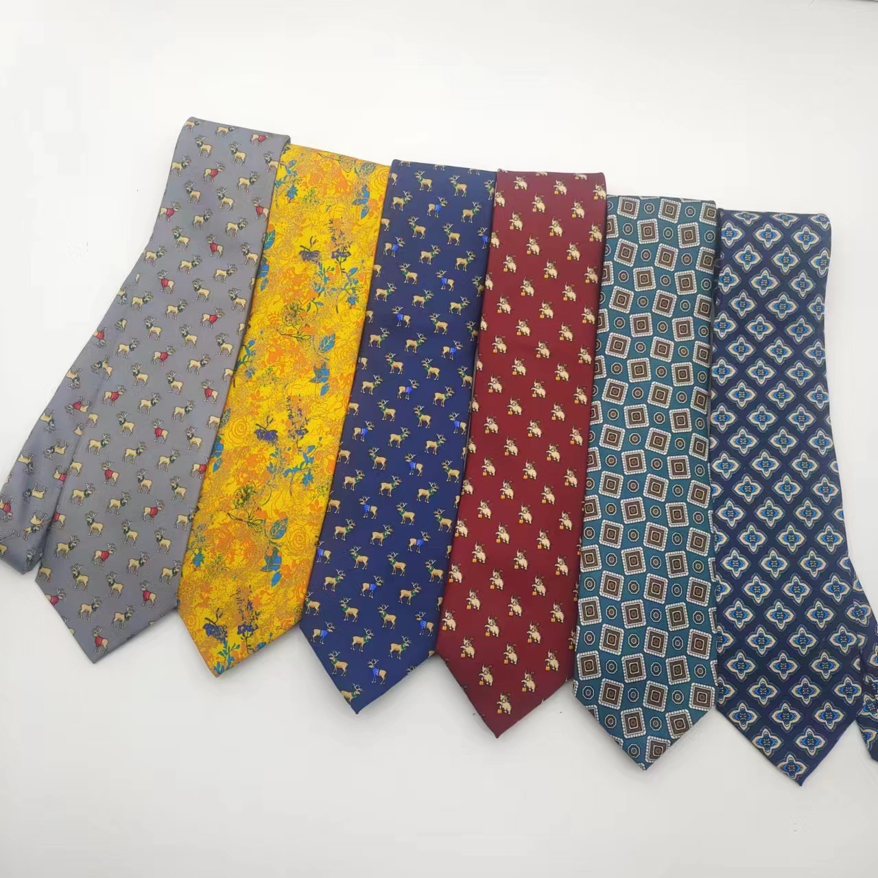 옐로우 레드 블루 그레이 그린 만화 동물 복고풍 패턴 넥타이 와이드 9cm 남성과 여성의 인쇄 핸드 타이스토어 가기