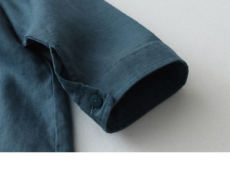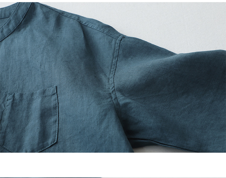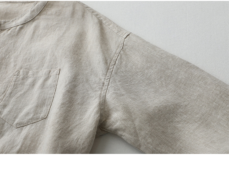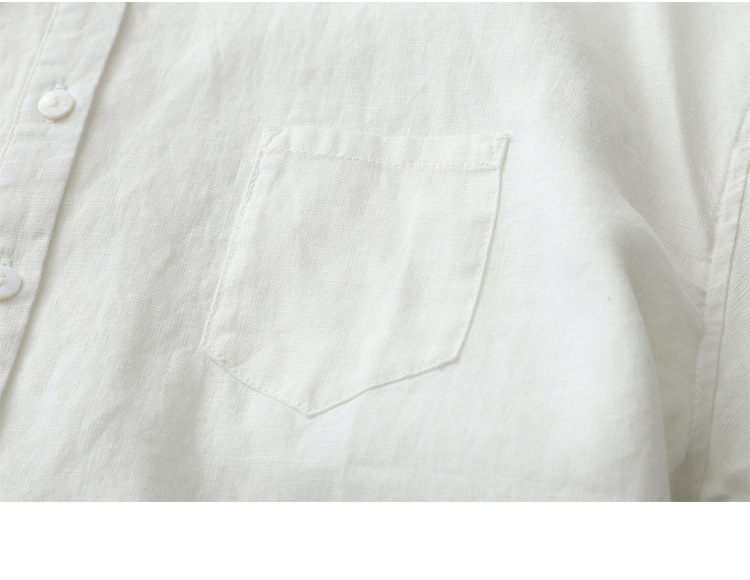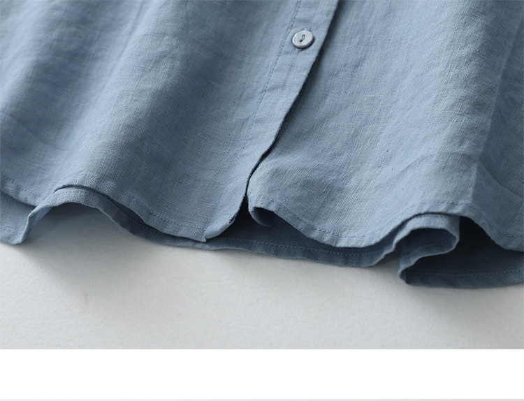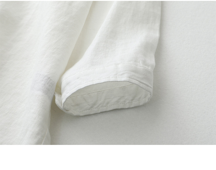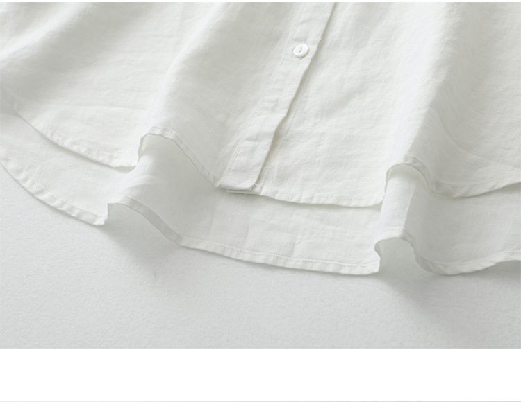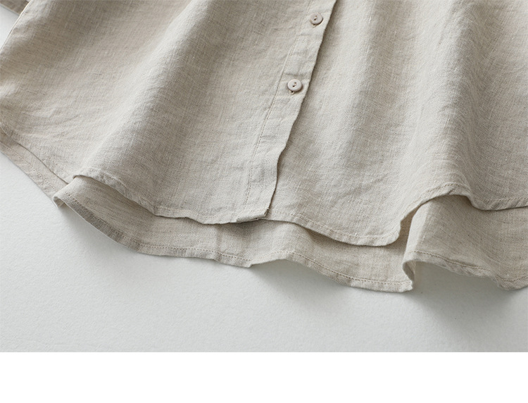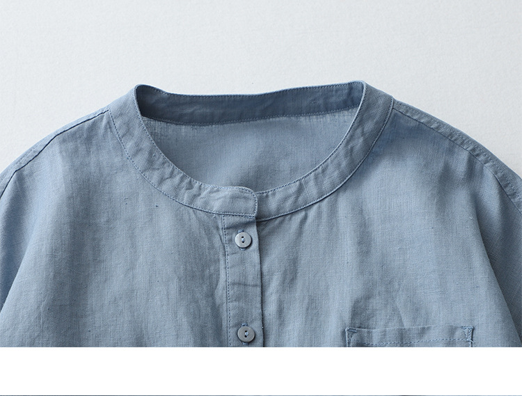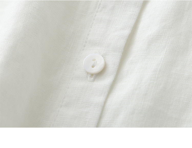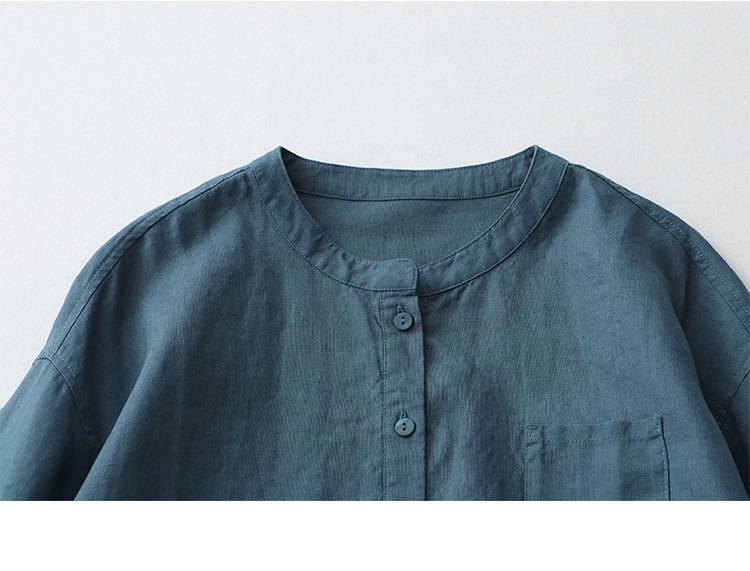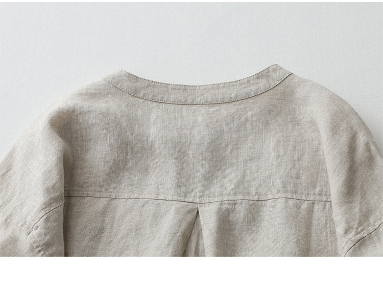 2025 여름 린넨 셔츠 스탠드 칼라 7부 소매 흰색 셔츠 루즈한 대형 자외선 차단 셔츠 일본 면 및 린넨 여성 의류스토어 가기