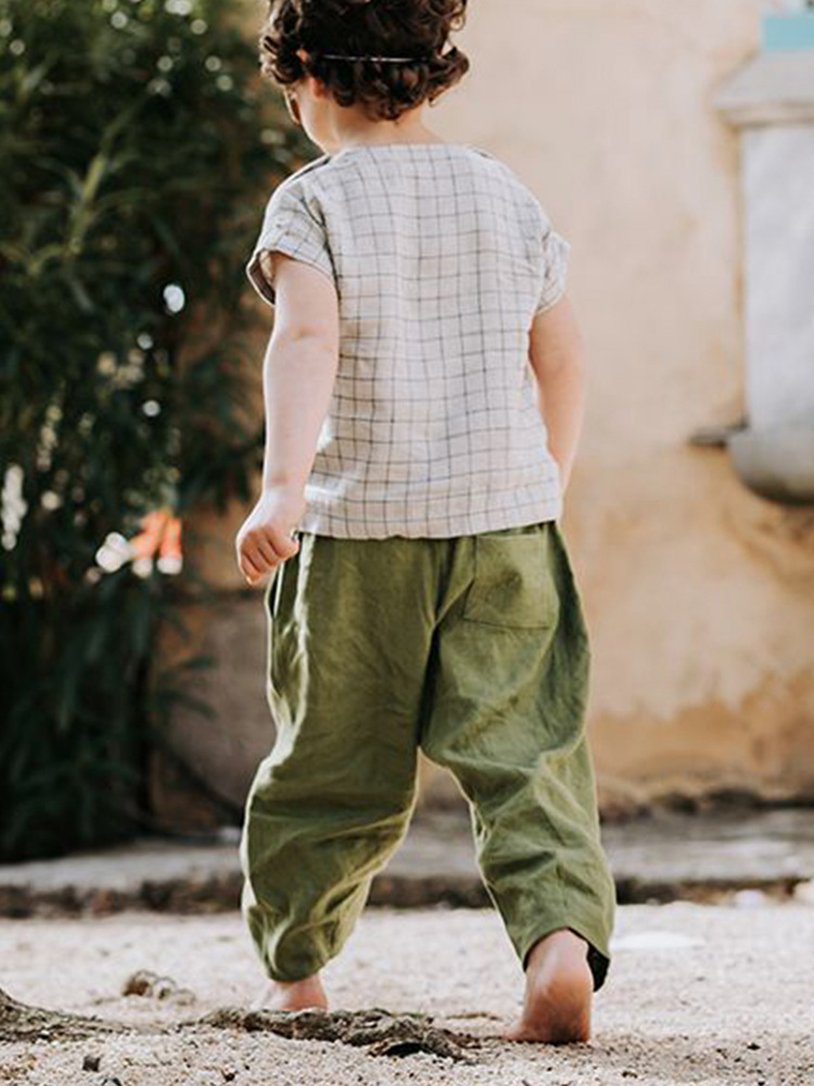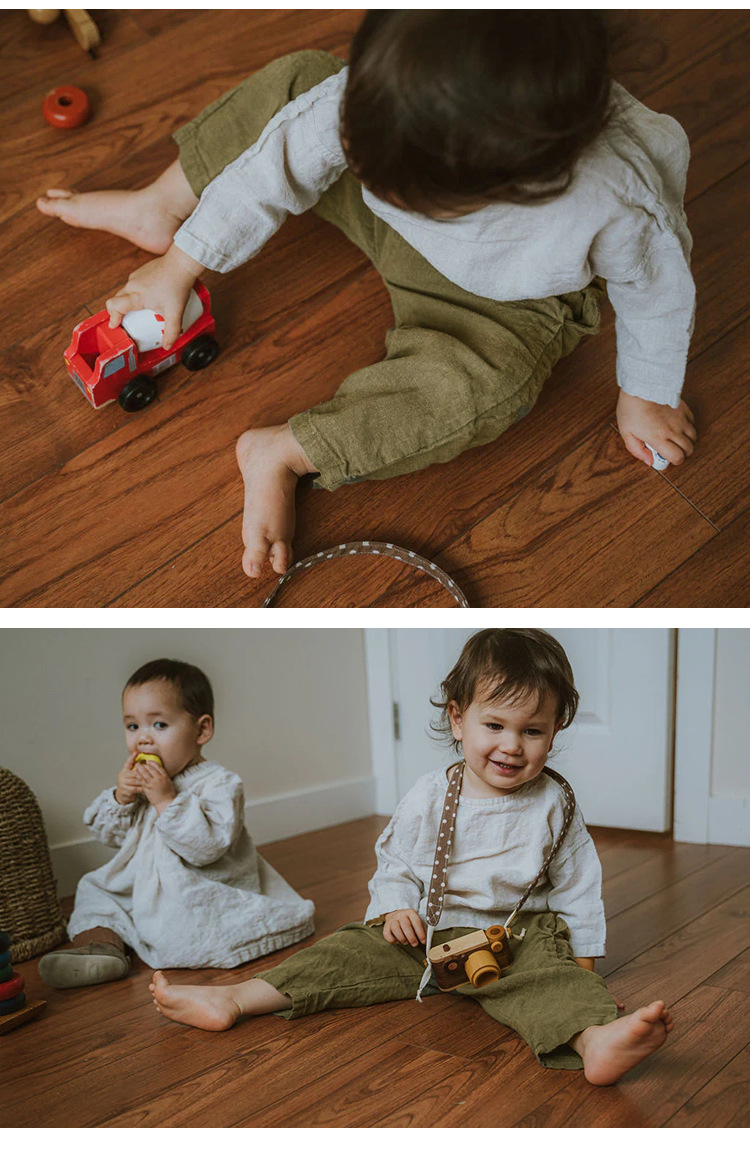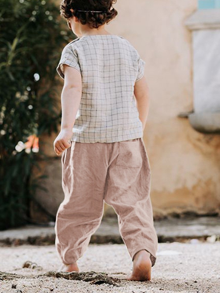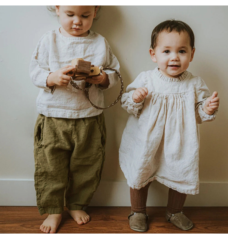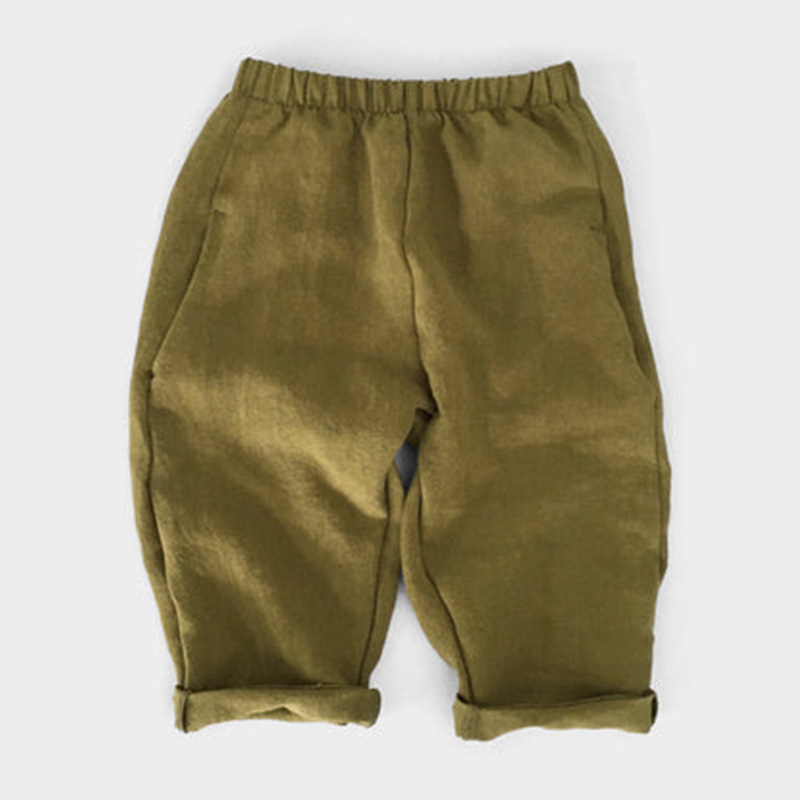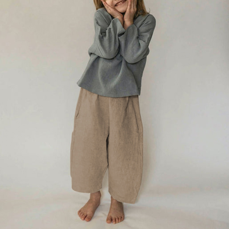 한국 스타일 아동 린넨 캐주얼 팬츠 2026 루즈핏 스트레이트 팬츠 남녀 아동 봄 가을 실크 코튼 린넨 긴바지스토어 가기